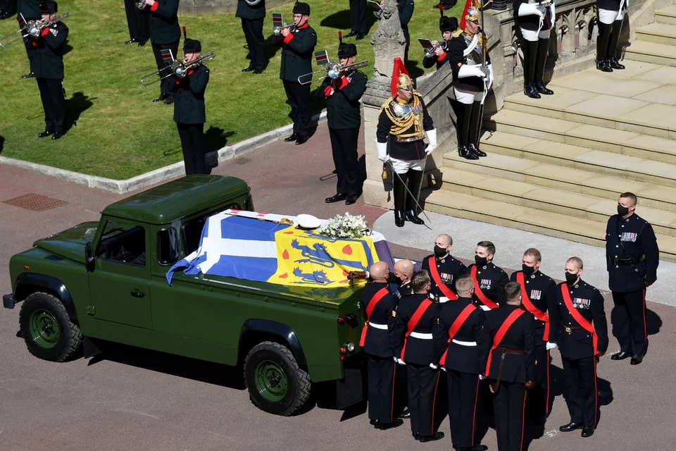 Η σορός του πρίγκιπα Φιλίππου μεταφέρθηκε με ένα κατά παραγγελία Land Rover, που έχει τροποποιηθεί ώστε να είναι ανοικτό το πίσω μέρος. Ο ίδιος ο πρίγκιπας Φίλιππος πέρασε 16 χρόνια δουλεύοντας επάνω στα σχέδια για το Land Rover σε «στρατιωτικό πράσινο» χρώμα, που θα κουβαλούσε το φέρετρό του, σύμφωνα με τη Mirror.