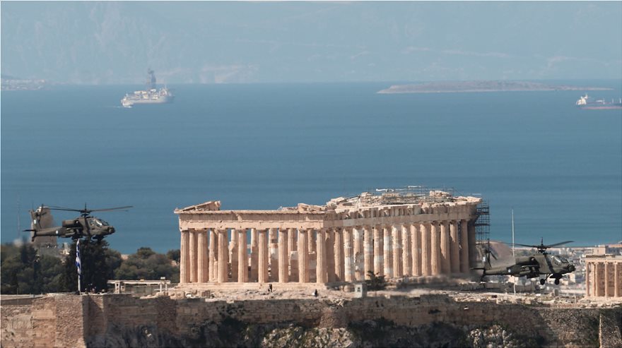 Η παρέλαση άρχισε στις 10:00 και, ας σημειωθεί προκαταβολικά, μια ανεκτίμητη στιγμή ήταν το μήνυμα μέσα από τον θάλαμο διακυβέρνησης ενός πολεμικού αεροσκάφους εν πτήσει, προς όλους τους Έλληνες, απανταχού της Γης. «Οι πιλότοι της Ελληνικής Πολεμικής Αεροπορίας, στέλνουμε μήνυμα περηφάνιας και σιγουριάς» είπε ο σμηναγός Δημήτρης Βολακάκης, ο αρχαιότερος της ομάδας «Ζευς» των F-16.