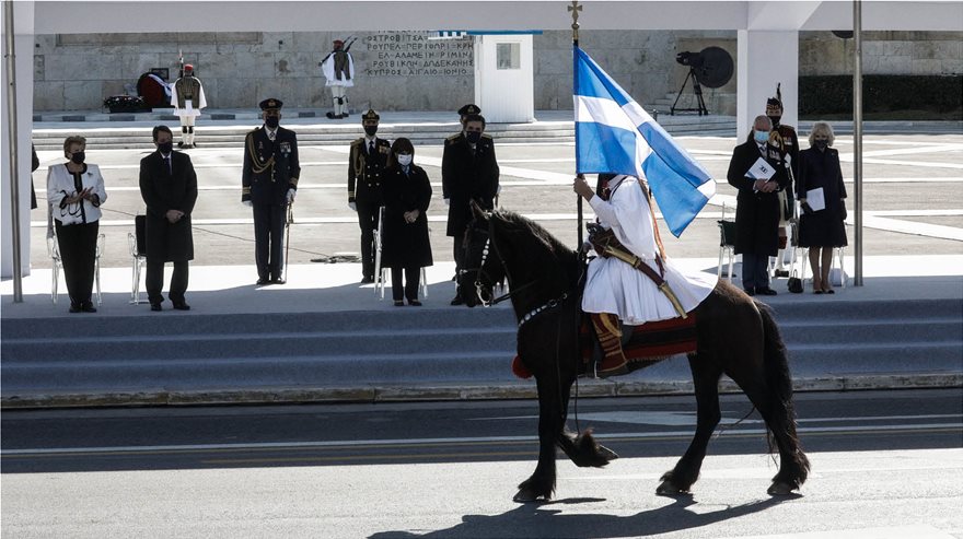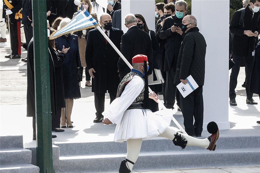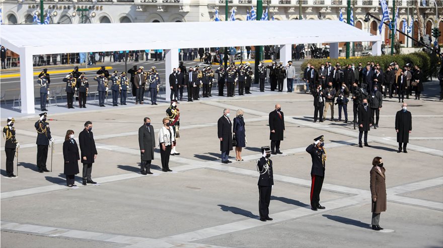 Και τόνισε, προκαλώντας ρίγη συγκίνησης: «Από τα λευκά σύννεφα και πάνω από τις μπλε θάλασσες, υψώνουμε τη γαλανόλευκη. Την κάνουμε ασπίδα για κάθε γωνιά του τόπου μας. Τιμούμε τα 200 χρόνια από το 1821. Αυτούς που ελευθέρωσαν την πατρίδα και τη μεγάλωσαν σε όλα, σε επικράτεια, δημοκρατία και ευημερία. Κρατάμε γερά τη σκυτάλη του Εθνικού Χρέους, φρουροί της Ανεξαρτησίας και της Ειρήνης. Ψηλά τα βλέμματα και οι καρδιές, εκεί όπου αγρυπνούν τα Ελληνικά Φτερά. Και μας ταξιδεύουν ενωμένους στον τρίτο αιώνα της ελεύθερης ζωής μας. Χρόνια Πολλά Πατρίδα. Χρόνια Πολλά Έλληνες, παντού στον κόσμο».