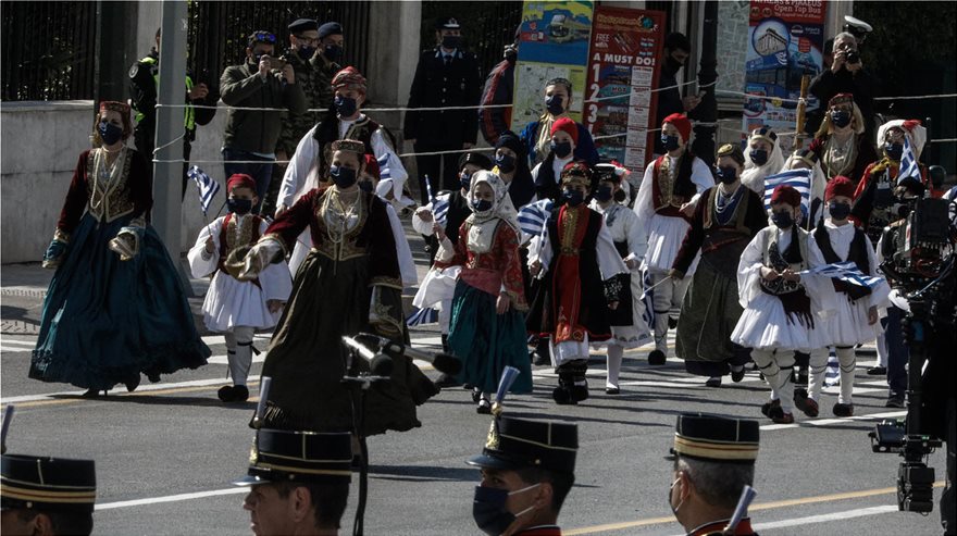 «Το ταξίδι στο χρόνο», όπως είπε ο Νίκος Αλιάγας, συνεχίστηκε με Ελληνόπουλα, ντυμένα με εθνικές ενδυμασίες, σε ελεύθερο βηματισμό και κουνώντας γαλανόλευκα σημαιάκια, κάτι που έγινε για πρώτη φορά σε παρέλαση της 25ης Μαρτίου.