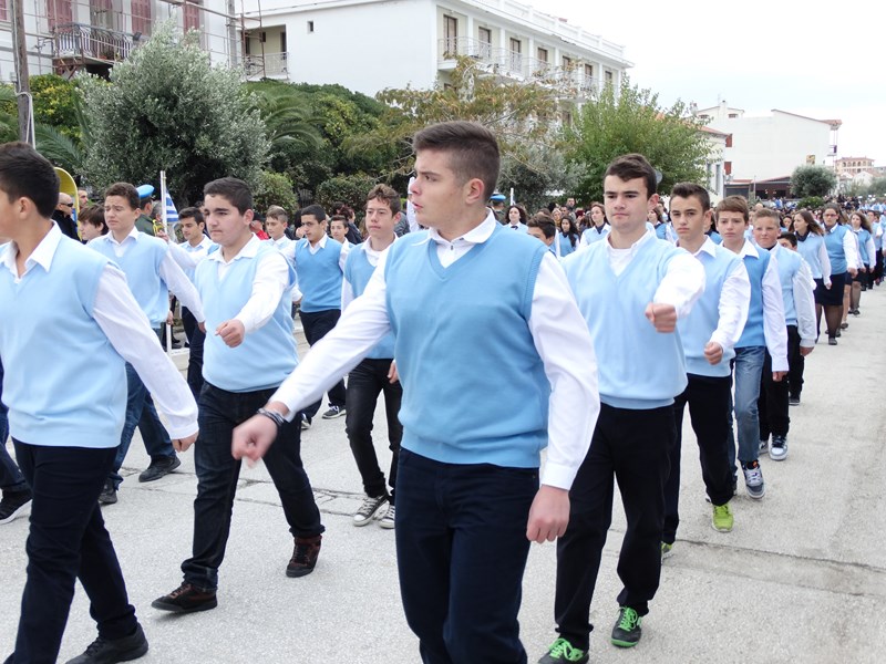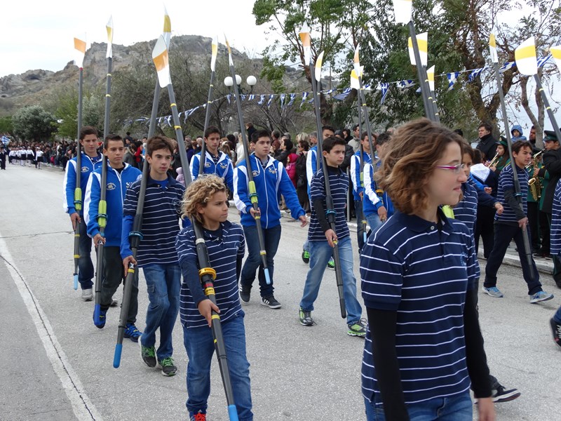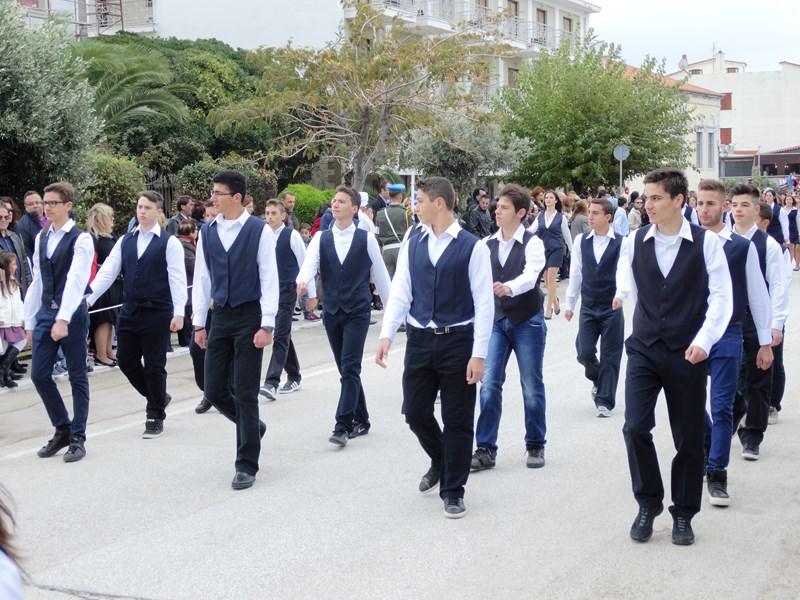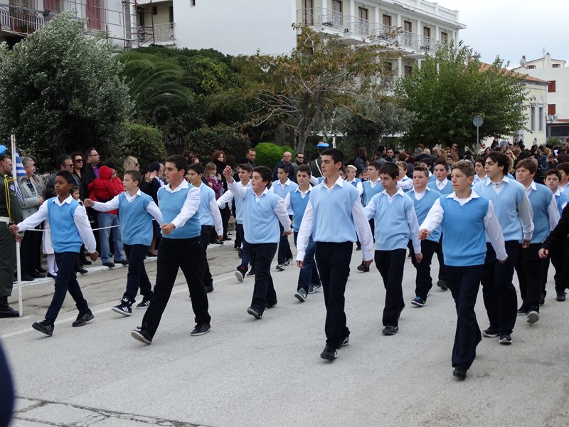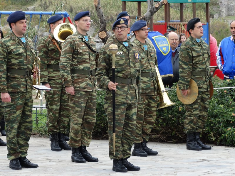 Η Φιλαρμονική του Δήμου, έδωσε και φέτος το ρυθμό στο βηματισμό των μαθητικών, στρατιωτικών και άλλων τμημάτων, παιανίζοντας εμβατήρια για τη σημερινή επέτειο.