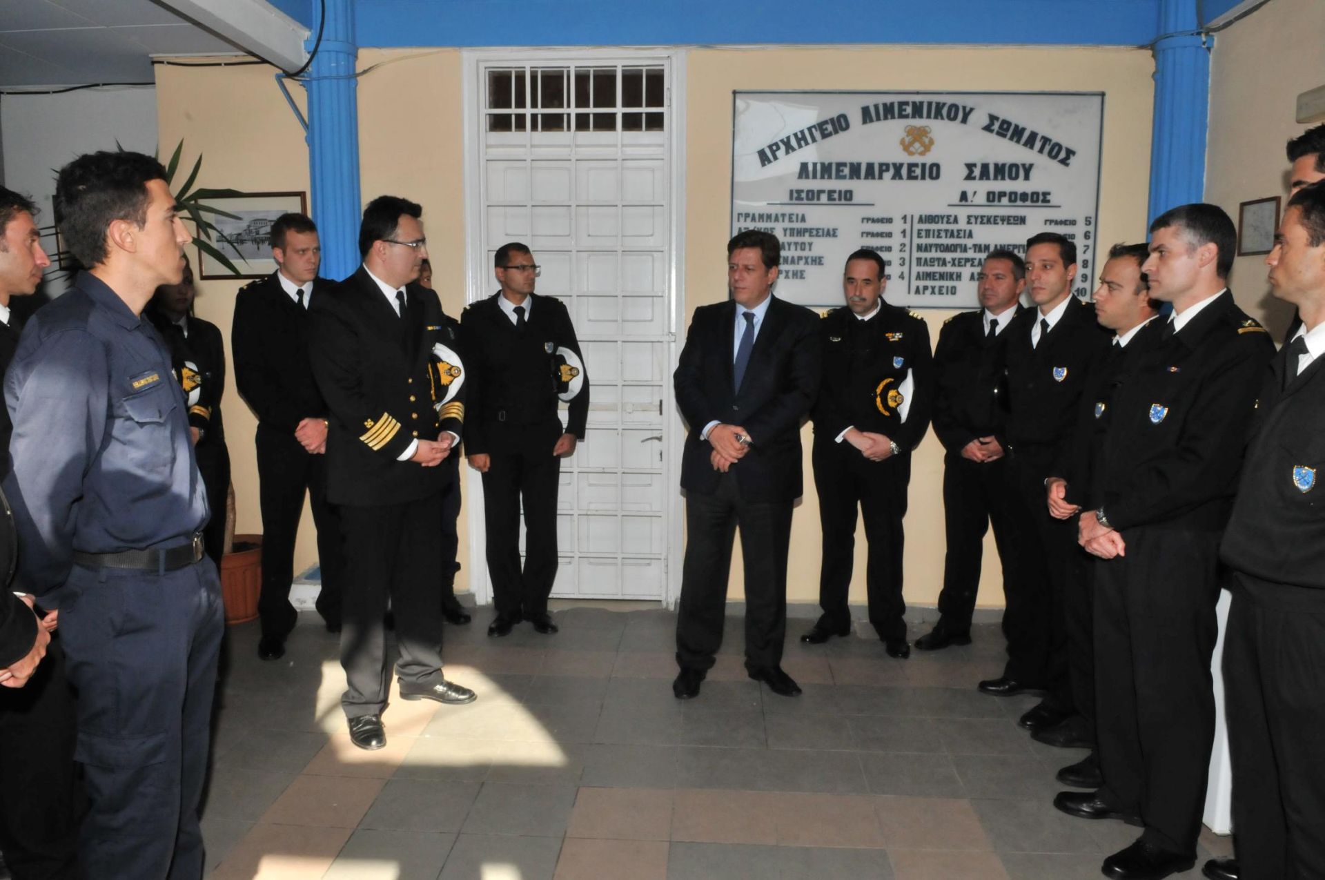 Το πρωί επισκέφθηκε το Κεντρικό Λιμεναρχείο Σάμου, όπου είχε την ευκαιρία να συνομιλήσει με τα στελέχη της Λιμενικής Αρχής, τα οποία επωμίζονται καθημερινά μεγάλο βάρος της αντιμετώπισης της παράνομης μετανάστευσης. "Θέλω να εκφράσω την ευγνωμοσύνη τόσο τη δική μου, όσο και του ελληνικού λαού στο πρόσωπό σας", σημείωσε χαρακτηριστικά. Παράλληλα ξεκαθάρισε ότι ο ίδιος θα είναι πάντα στο πλευρό τους συνεχίζοντας να προσπαθεί να επιλύει χρόνια ζητήματα, όπως πριν από λίγους μήνες το ιατροφαρμακευτικό, καθώς όπως υπογράμμισε: "Χάρις στην αυταπάρνηση που επιδεικνύετε καθημερινά τόσο τα στελέχη του Λιμενικού όσο και όλο το ένστολο προσωπικό, η χώρα κρατήθηκε όρθια τα χρόνια της κρίσης».