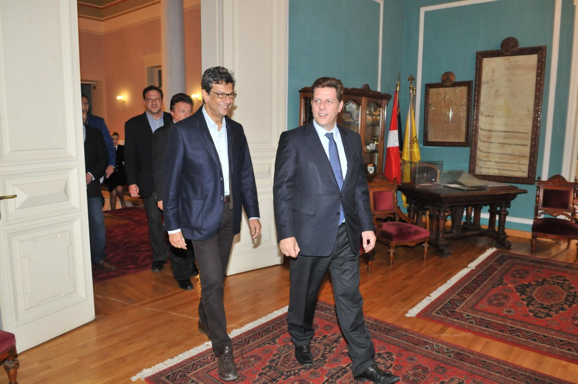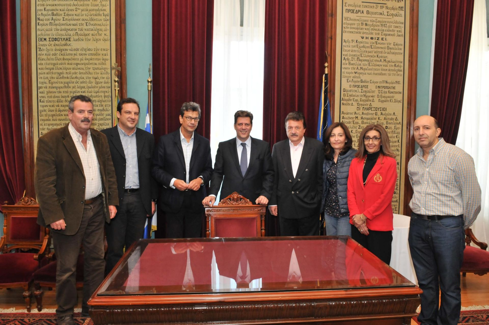 Στη συνέχεια μετέβη στο Δημαρχείο Σάμου, όπου και συναντήθηκε με το Δήμαρχο Σάμου,Μιχάλη Αγγελόπουλο. Ο κος Αγγελόπουλος παρέδωσε στον κ. Βαρβιτσιώτη ένα αντίγραφο της Διακήρυξης για την απελευθέρωση της Σάμου, ευχαριστώντας τον παράλληλα γιατί , όπως είπε, «λόγω των ενεργειών σας αντιμετωπίσθηκε δραστικά ο συγκοινωνιακός απομονωτισμός του νησιού». Ο κος Βαρβιτσιώτης, από την πλευρά του, επεσήμανε στον Δήμαρχο Σάμου ότι«για τη αποτελεσματική αντιμετώπιση των προβλημάτων χρειάζεται από κοινού συνεργασία, Κράτους και τοπικών κοινωνιών».
