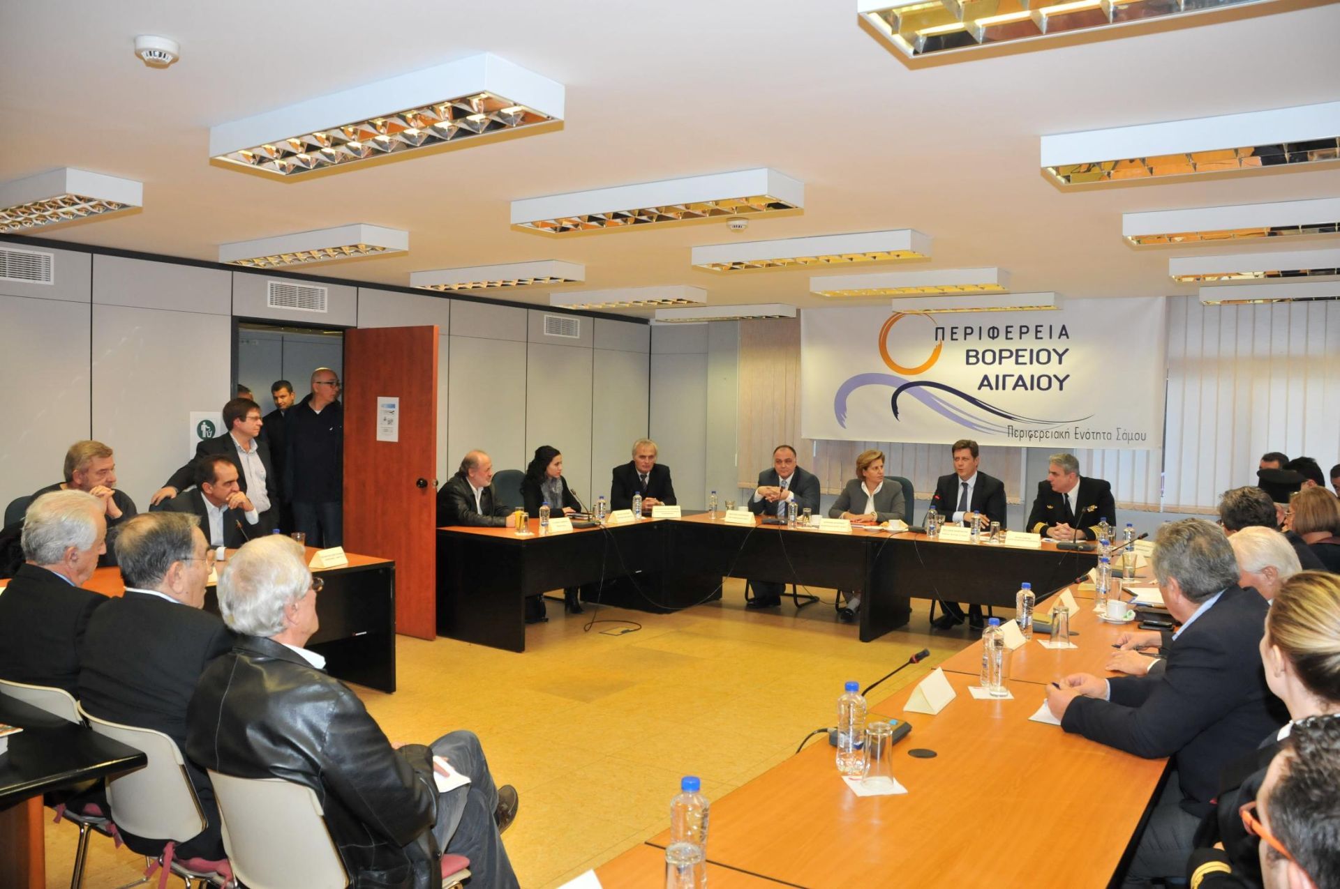 Ακολούθως ο κ. Υπουργός πήγε στο κτίριο της Περιφερειακής Ενότητας Σάμου, όπου συναντήθηκε με την Περιφερειάρχη Βορείου Αιγαίου, Χριστιάνα Καλογήρου και τον Αντιπεριφερειάρχη Σάμου, Νικόλαο Κατρακάζο. Στη συνέχεια προέδρευσε σε διευρυμένη σύσκεψη με φορείς της ευρύτερης περιοχής και βασικό θέμα το ακτοπλοϊκό δίκτυο του νησιού, αλλά και του υπόλοιπου Βορείου Αιγαίου. Παρόντες στη σύσκεψη, πέραν της Περιφερειακής αρχής, ήταν επίσης, ο Σεβασμιότατος Μητροπολίτης Σάμου, κ.κ. Ευσέβιος, η βουλευτής του ΣΥ.ΡΙΖ.Α Σάμου, Αγνή Καλογέρη, ο Δήμαρχος Σάμου, Μιχάλης Αγγελόπουλος, ο Δήμαρχος Ικαρίας, Στυλιανός Σταμούλος, ο Δήμαρχος Φούρνων, Ιωάννης Μαρούσης, καθώς και εκπρόσωποι επιμελητηρίων και παραγωγικών φορέων της πόλης.