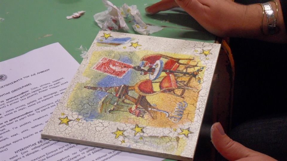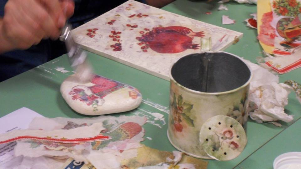 Έτσι, με μια μικρή διαφοροποίηση στο πρόγραμμά του, την Κυριακή 7 Δεκεμβρίου, πραγματοποιήθηκε το αποσπέρισμα που ως αντικείμενο είχε τις κατασκευές για ενήλικες με την τεχνική του ντεκουπάζ.