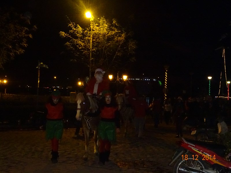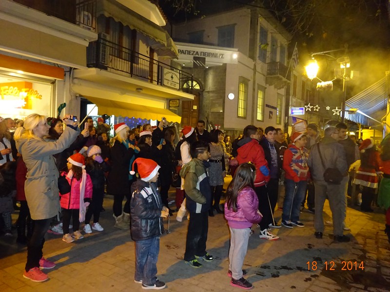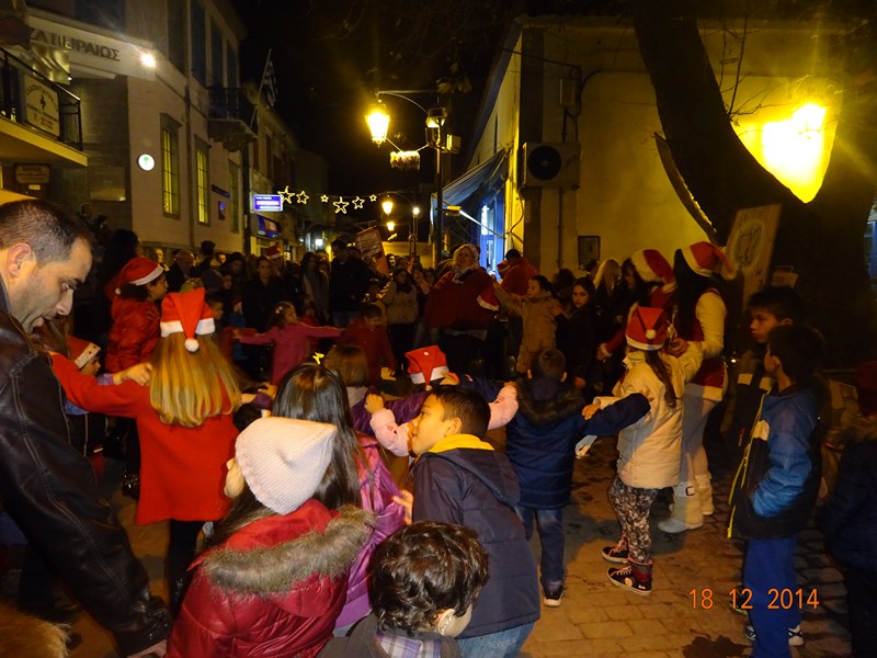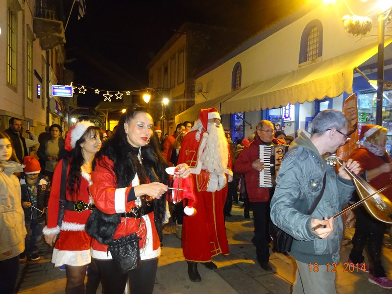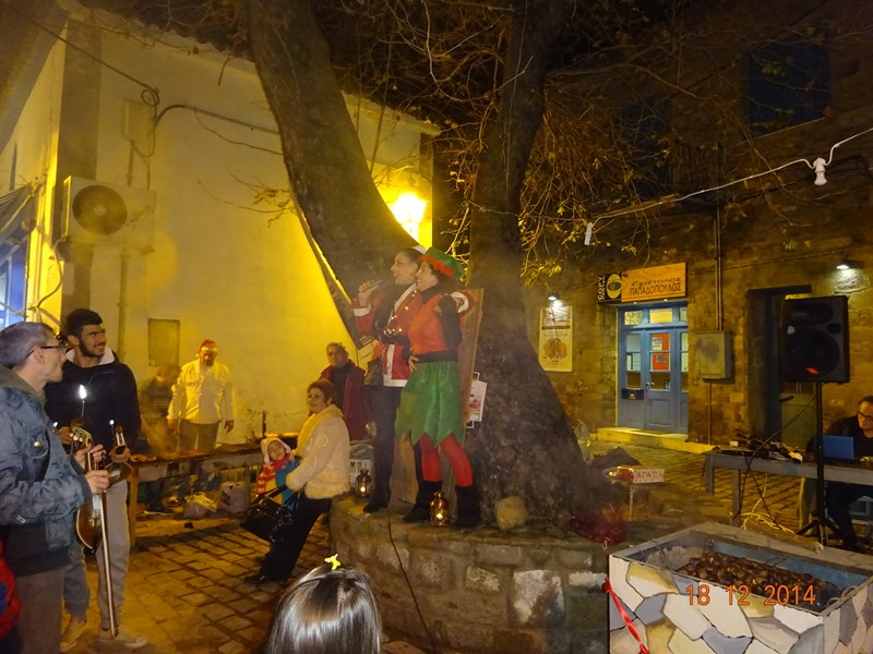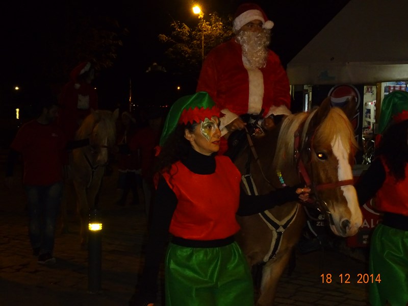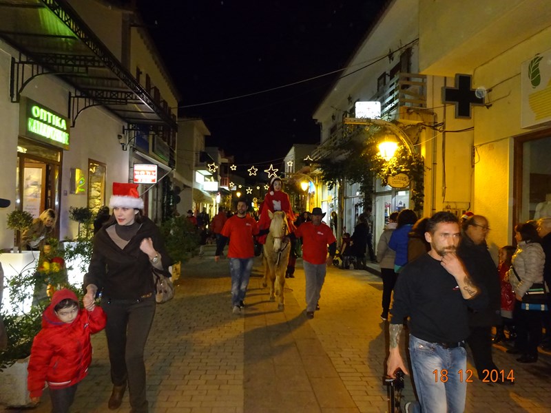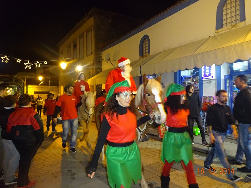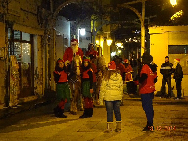 Νωρίτερα διέσχισαν το δρόμο της αγοράς 2 άλογα με τον Αϊ-Βασίλη και τα ξωτικά του, με τη συνοδεία παραδοσιακών μουσικών οργάνων.