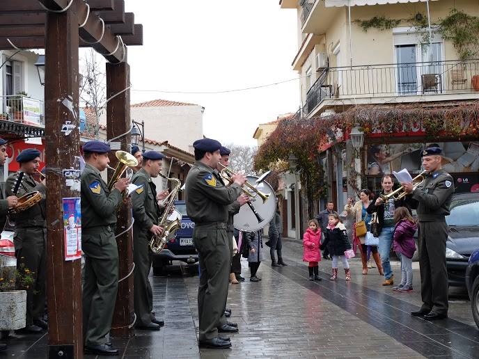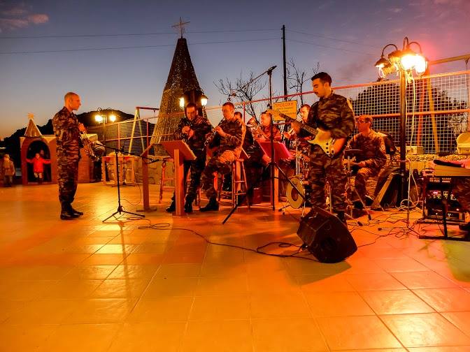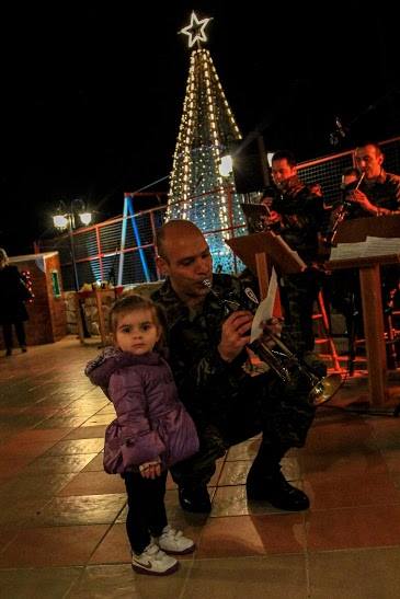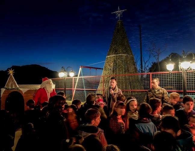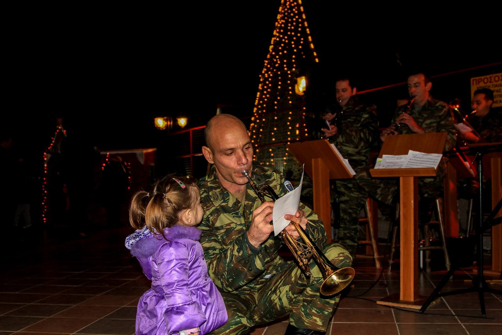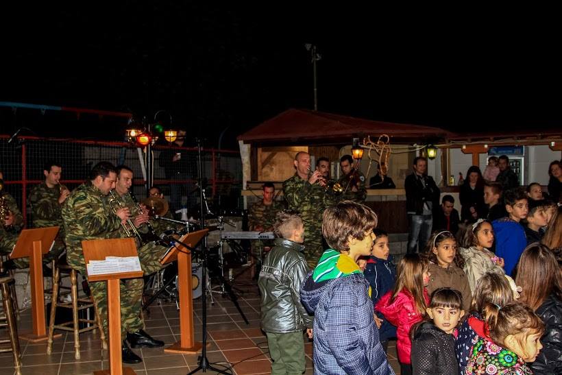 Η Στρατιωτική Μουσική έπαιζε σε χριστουγεννιάτικους ρυθμούς ενώ κεράσματα προσφέρθηκαν στα παιδιά. Το άναμμα του δέντρου συνοδεύτηκε από εντυπωσιακά πυροτεχνήματα που φώτισαν τον ουρανό. Ο Αϊ Βασίλης κατάφερε να μοιράσει δώρα και στα 190 παιδιά! Τα χαμόγελα και οι ευχές κυριαρχούσαν ανάμεσα στις παρέες !