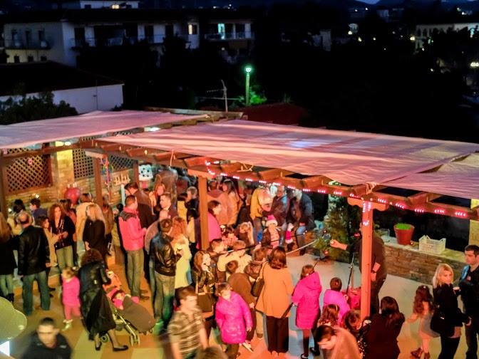 Ο περίβολος της Λέσχης ήταν όμορφα στολισμένος ενώ παιχνίδια – διαγωνισμοί-facepainting απασχολούσαν τα παιδιά που ανυπομονούσαν για τον ερχομό του Αϊ – Βασίλη.