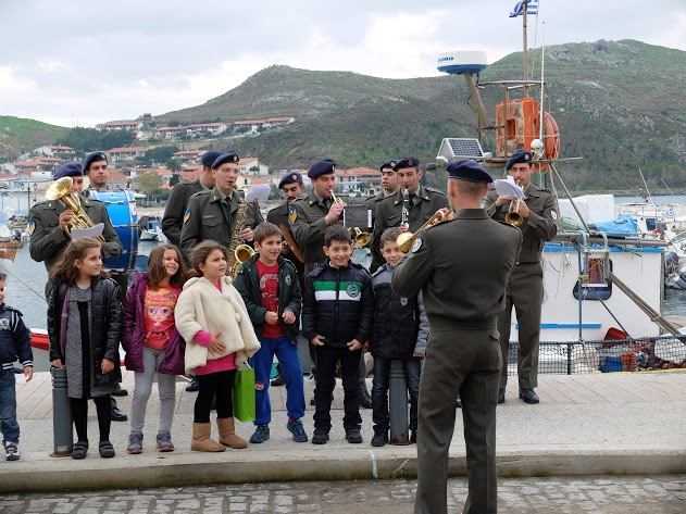 Οι εκδηλώσεις συνεχίστηκαν και σήμερα ,με τη Στρατιωτική Μουσική να παίζει χριστουγεννιάτικα τραγούδια διασχίζοντας την αγορά της Μύρινας προκαλώντας την έκπληξη και τον θαυμασμό μικρών και μεγάλων.