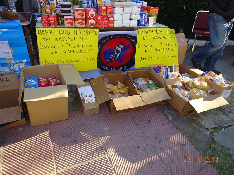 Οι εθελοντές βρίσκονται στην πλατεία Υψιπύλης (ΟΤΕ), συγκεντρώνοντας φάρμακα και τρόφιμα μακράς διάρκειας (ρύζι, μακαρόνια, όσπρια, γάλατα, λάδι, κονσέρβες, σάλτσες, ζάχαρη, καφέ, φρυγανιές , μπισκότα κ.α.), όπου μπορεί ο καθένας να δώσει το "παρών", βάζοντας το λιθαράκι του στην προσπάθεια αυτή.