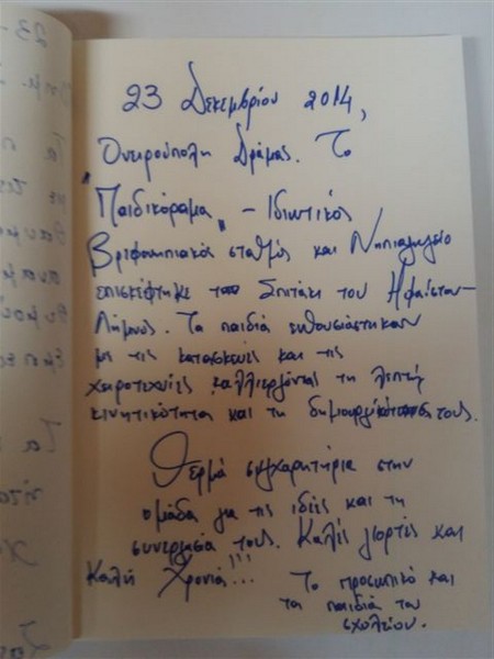 Η ΑΜΚΕ Λήμνος Τουριστική, μοιράστηκε φωτογραφικό υλικό από τα σχολεία που έχουν πραγματοποιήσει επίσκεψη στο σπιτάκι αλλά και τα σχόλια των κηδεμόνων στο βιβλίο εντυπώσεων.