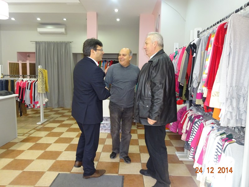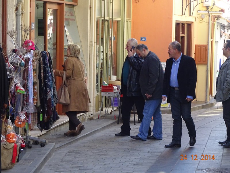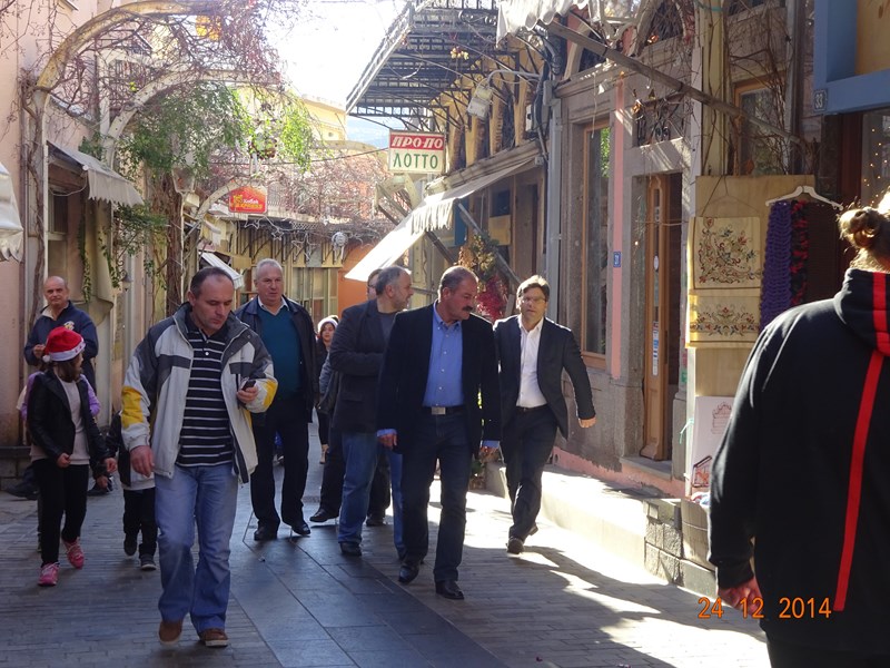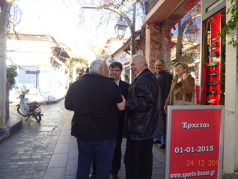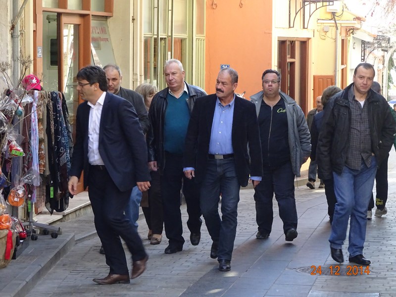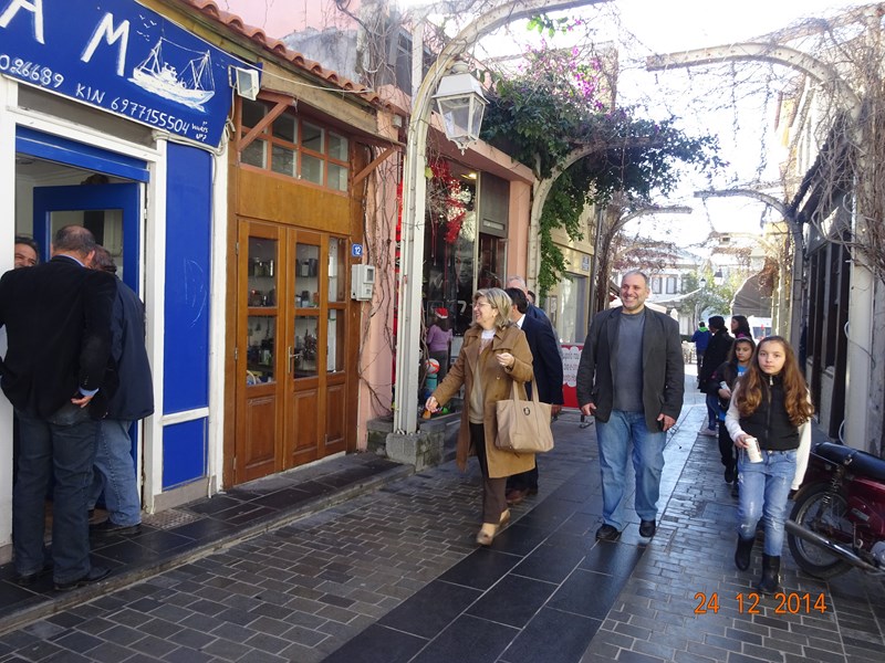 Ο δήμαρχος, συνοδευόμενος από δημοτικούς συμβούλους και συνεργάτες του, ξεκίνησε από το δημοτικό κατάστημα γύρω στις 11 το πρωί, επισκέφθηκε το σημείο αναφοράς της πόλης, την αγορά της Μύρινας, κουβέντιασε με τους εμπόρους και ευχήθηκε για την αυριανή γιορτή.