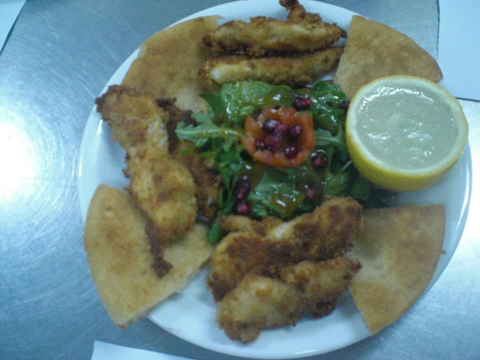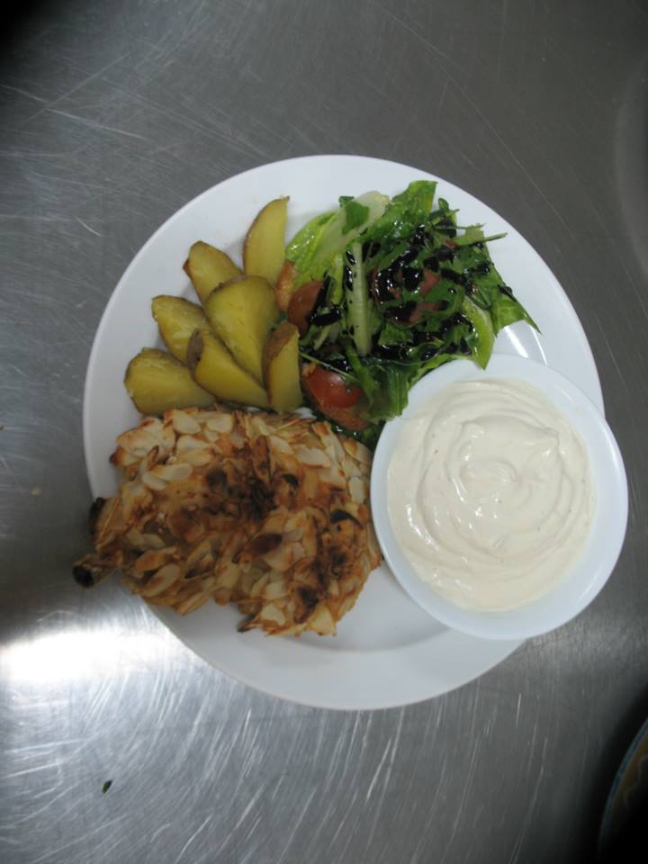 Τζίρτη Χαρούλα - Μπουτάκια κοτόπουλου πανέ με αμύγδαλο φιλέ και σως γιαουρτιού