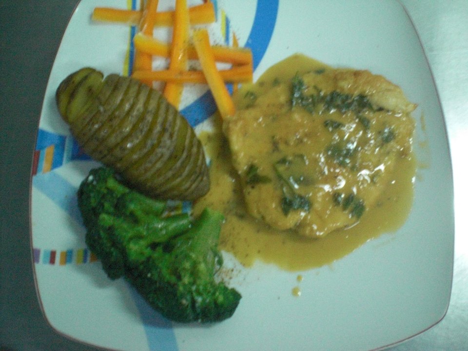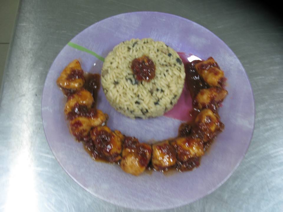 Ξυλόπορτα Δώρα - Κοτόπουλο με σάλτσα πορτοκαλιού & ρύζι basmati με κουκουνάρι και λαχανικά
