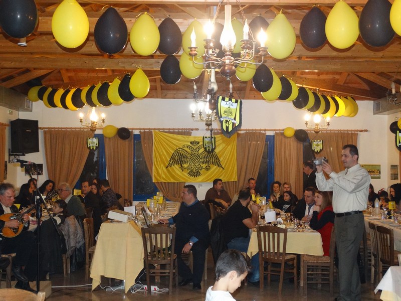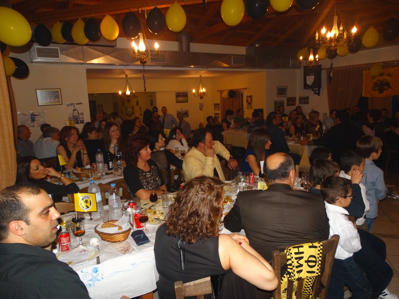 Με πλήθος οπαδών και φίλων της Ένωσης, το γλέντι κράτησε μέχρι τις πρώτες πρωινές. Επίτιμος προσκεκλημένος της βραδιάς ήταν ο παλαίμαχος ποδοσφαιριστής της ΑΕΚ, Τάκης Καραγκιοζόπουλος, ο οποίος και βραβεύτηκε με τιμητική πλακέτα από τους φίλους της Ένωσης για την προσφορά του στην ομάδα.