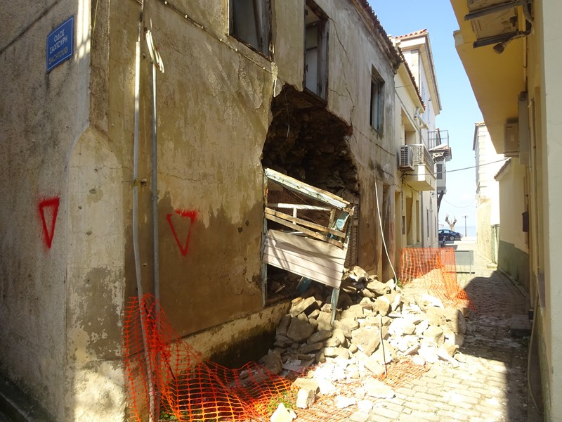 Έτσι, έμειναν τα μισογκρεμισμένα κτίρια και οι ταινίες σήμανσης που έχουν τοποθετηθεί, οι οποίες λειτουργούν μεν προειδοποιητικά αλλά και αυτό με τον καιρό εξασθενεί στην προσοχή των διερχομένων.