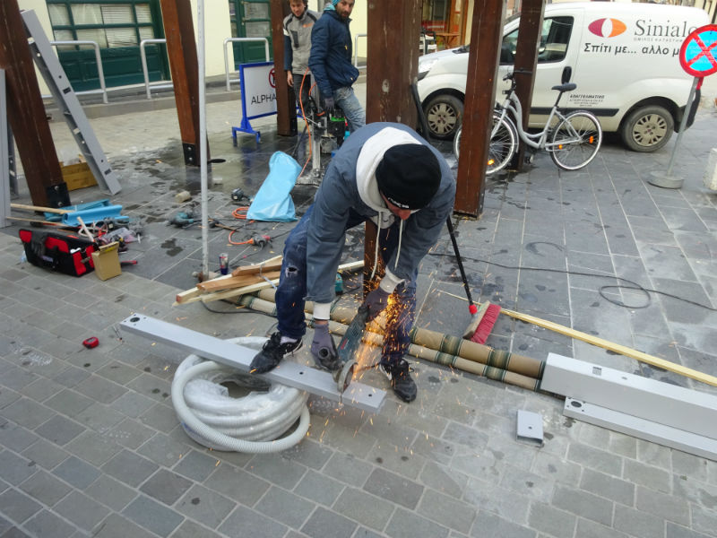 Ο φωτογραφικός φακός του Fm 100, εντόπισε το συνεργείο εν ώρα εργασίας στην αγορά της Μύρινας, στην πλατεία Υψιπύλης, εκεί που θα κατασκευαστεί ο μικρότερος σταθμός.