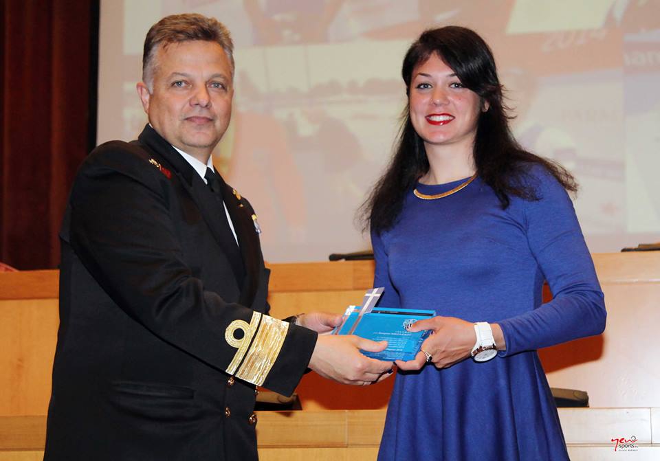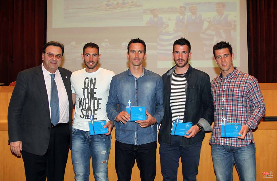 Έτσι, ο Παναγιώτης μαζί με τα μέλη του υπόλοιπου πληρώματος ανέβηκαν στη σκηνή του Αμφιθέατρου της Ελληνικής Ολυμπιακής Επιτροπής, για παραλάβουν το βραβείο τους.
