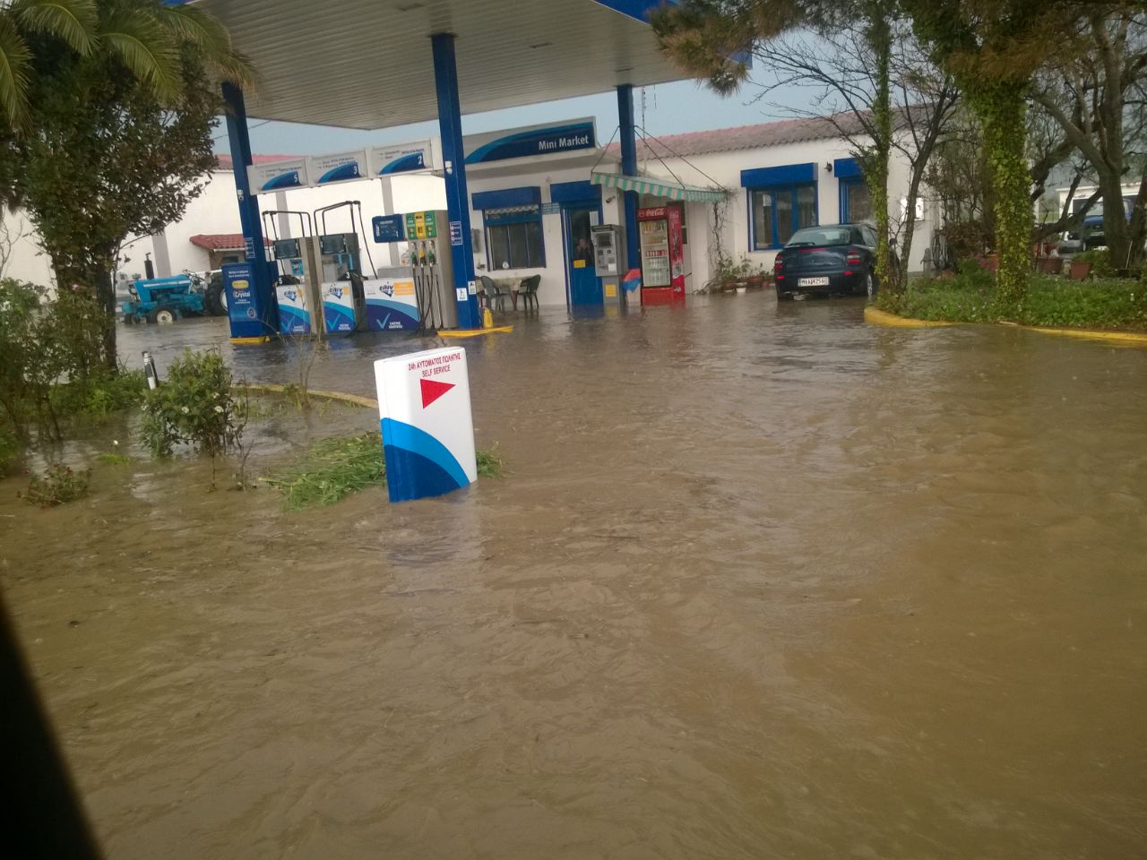 Ζημιά ανυπολόγιστης για την ώρα αξίας, έπαθε η επιχείρηση υγρών καυσίμων και αντιπροσωπεία αυτοκινήτων του Τριαντάφυλλου Τσαπτσαλή, με τον ιδιοκτήτη από εχθές να προσπαθεί να επαναφέρει την ομαλή λειτουργία της.