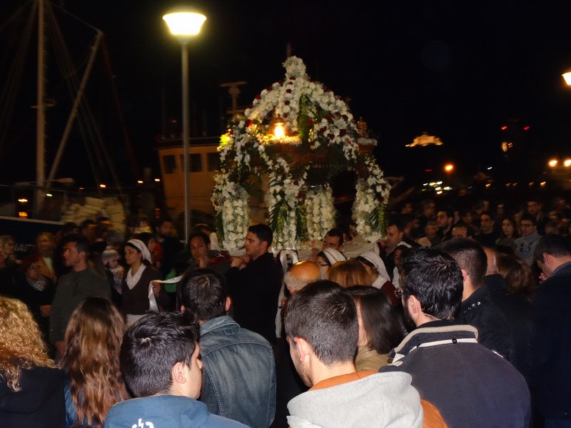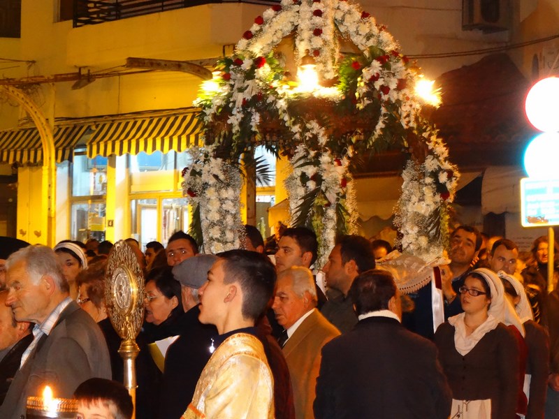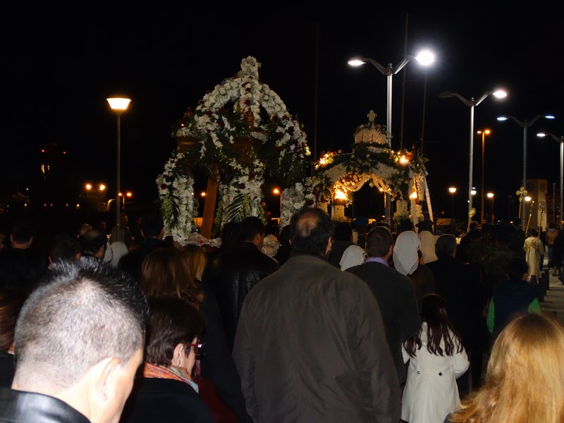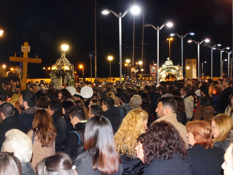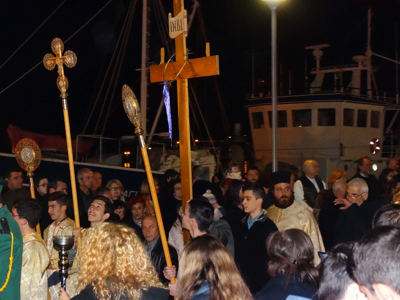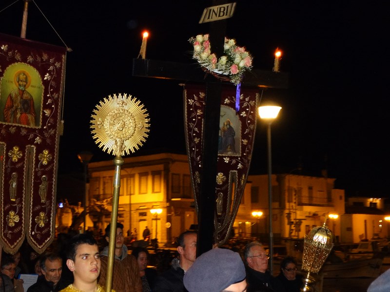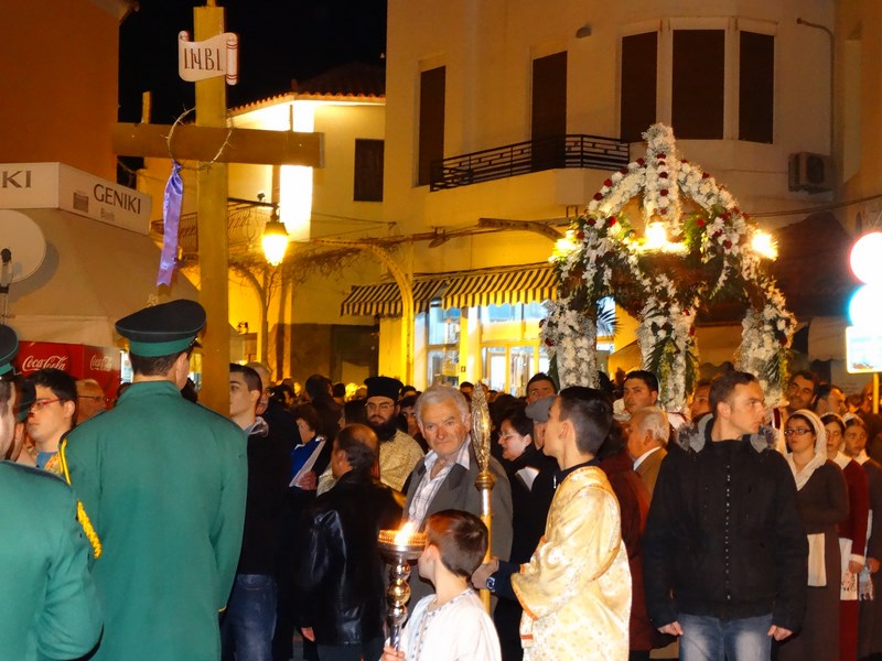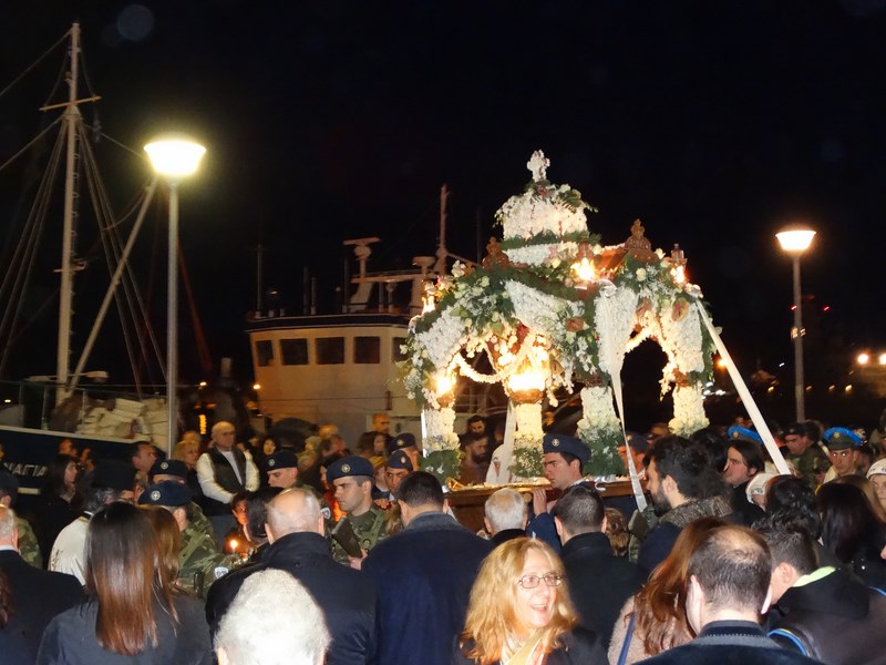 Πλήθος πιστών ακολούθησε και φέτος την περιφορά των δύο επιτάφιων, σε ένα σκηνικό καιρού ηπιότερο απ' ότι τις προηγούμενες μέρες αλλά παρ' όλα αυτά, ακόμα, επίμονα χειμωνιάτικο.
