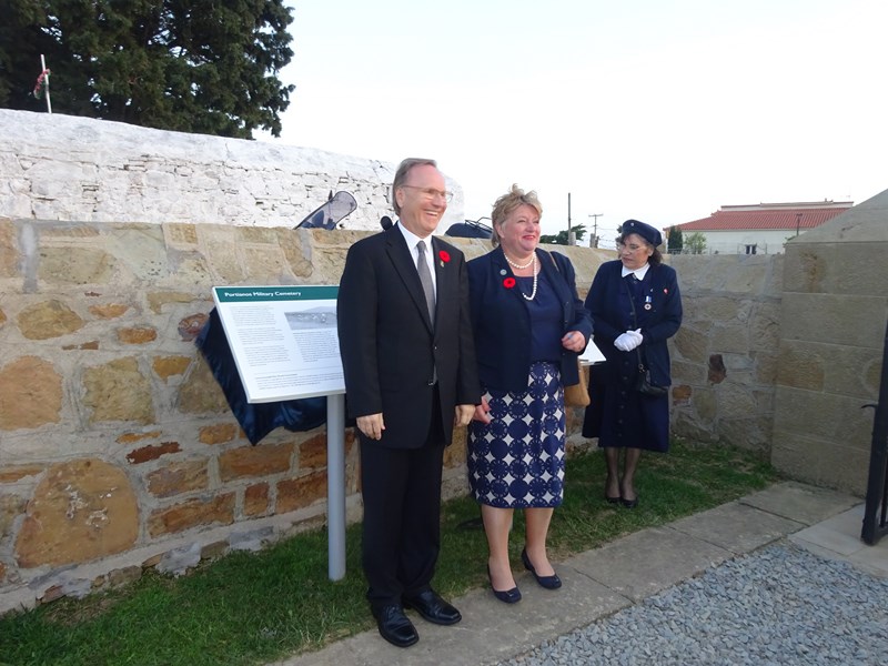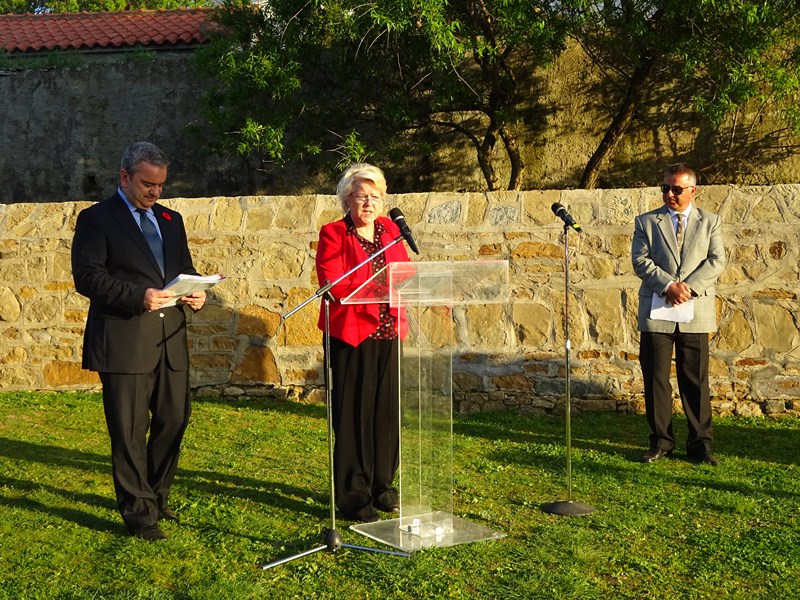 Χαιρετισμό απηύθυναν η Περιφερειάρχης Βορείου Αιγαίου κα Χριστιάνα Καλογήρου, ο Δήμαρχος Λήμνου κ. Δημήτρης Μαρινάκης, ο Γενικός Διευθυντής Υπουργείο Βετεράνων του Καναδά κ. Greg Kenney, η Γενική Διευθύντρια Επιτροπής Πολεμικών Τάφων Κοινοπολιτείας, ο Πρόεδρος του Ελληνικού Ερυθρού Σταυρού Λήμνου κ. Θ. Μπαβέας, ο Επίτιμος Πρόξενος της Ν. Ζηλανδίας και ο Ιστορικός και γραμματέας της επιτροπής μνήμης Λήμνου – Καλλίπολης κ. Jim Claven.