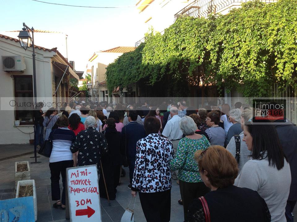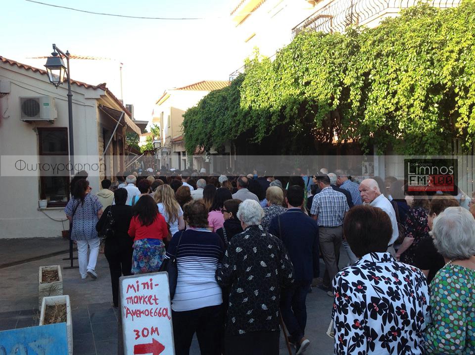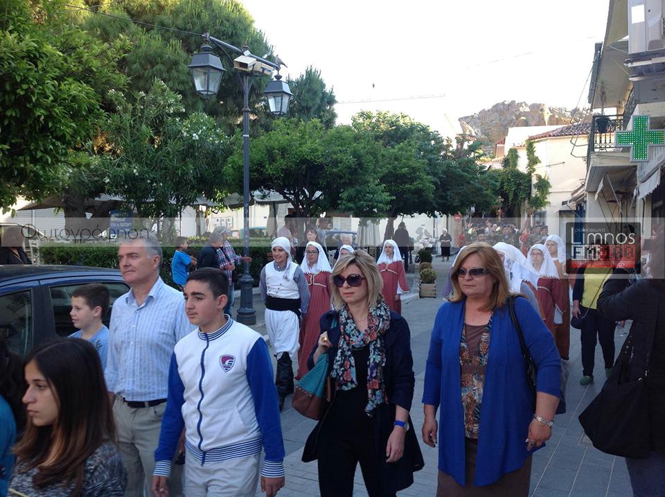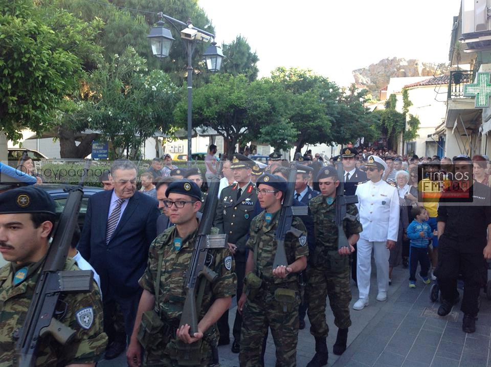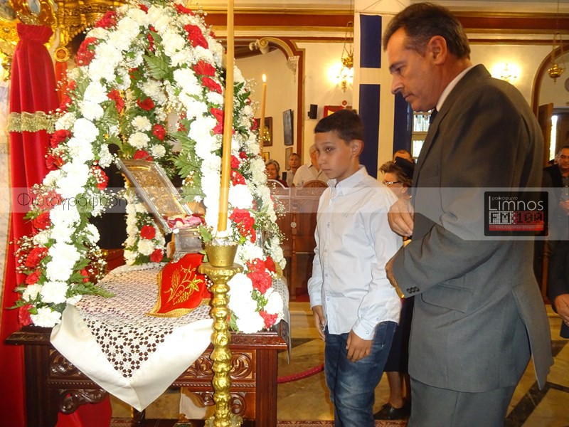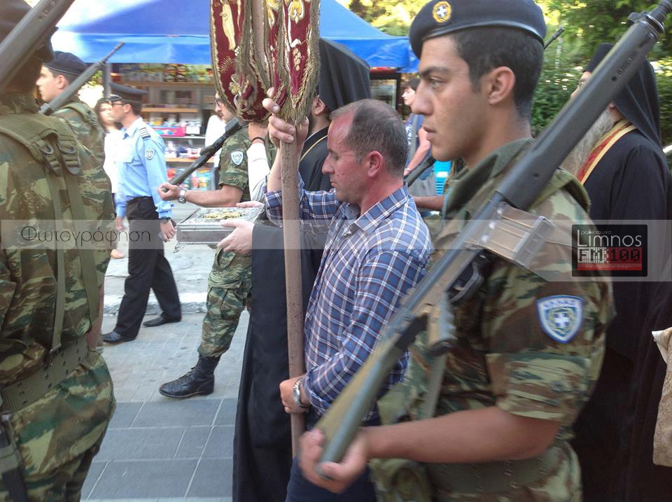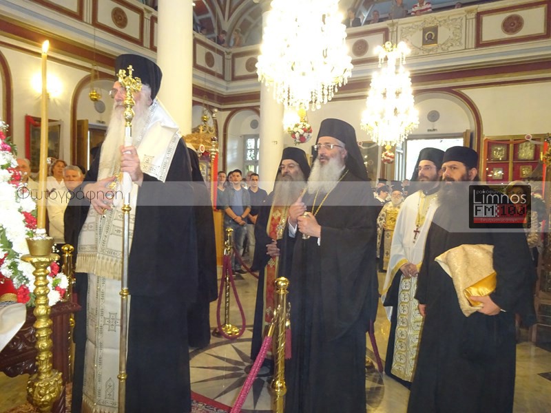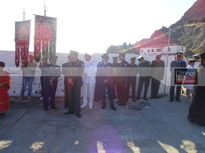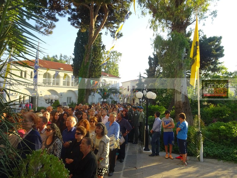 Το παρών στις εκδηλώσεις έδωσε η πολιτική και στρατιωτική ηγεσία του τόπου και των Ενόπλων Δυνάμεων, ο βουλευτής Νομού Λέσβου Χαράλαμπος Αθανασίου, ο Μητροπολίτης Λήμνου και Αγίου Ευστρατίου κ.κ Ιερόθεος, πλήθος ιερέων, καθώς και εκπρόσωποι του Ερυθρού Σταυρού και του Λυκείου Ελληνίδων Λήμνου. Μετά την άφιξη στον Ιερό Ναό Αγίας Τριάδας Μύρινας, οι άρχοντες του νησιού προσκύνησαν το ιερό τεμάχιο, ενώ ο Δήμαρχος Λήμνου απέφυγε να προσκυνήσει.