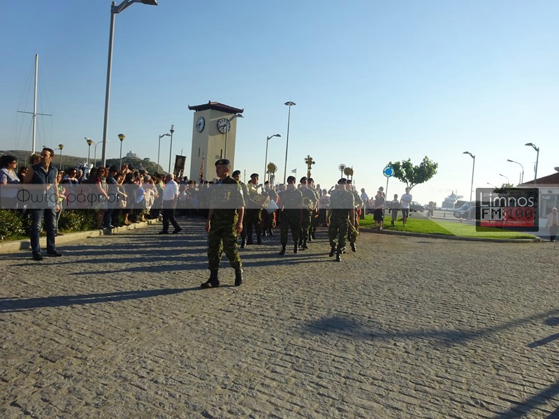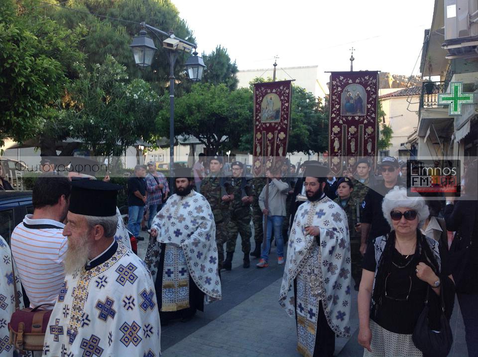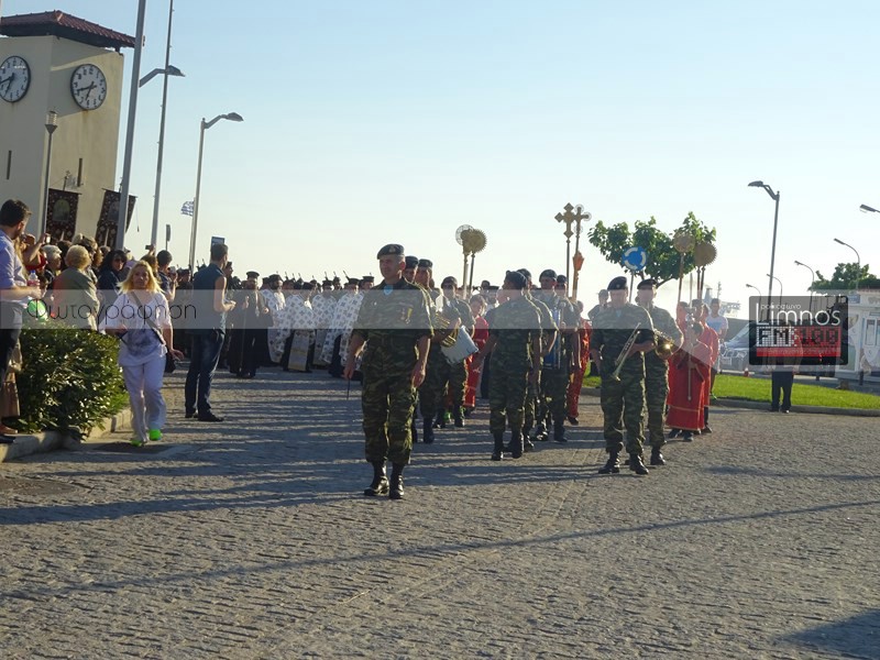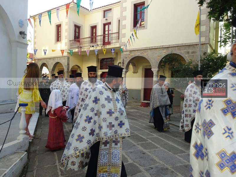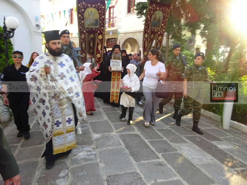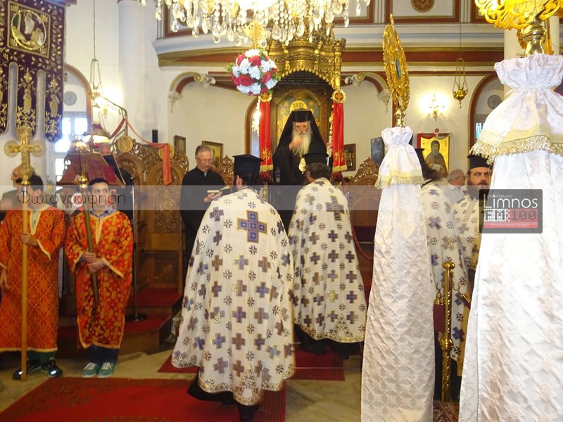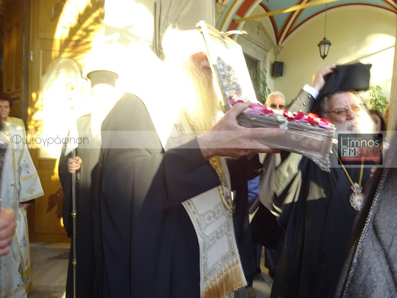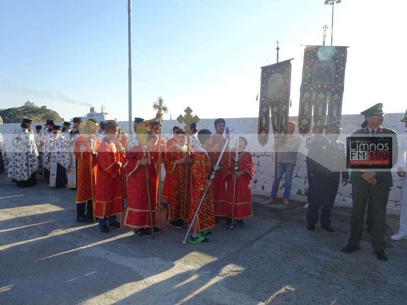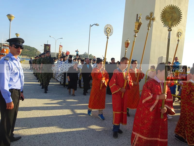 Αμέσως μετά την άφιξη του Τιμίου Ξύλου πραγματοποιήθηκε Λιτάνευση από το Λιμάνι της Μύρινας προς τον Ι.Ν. Αγίας Τριάδας, με τη συμμετοχή αξιωματικών και στρατιωτικών τμημάτων, τη Φιλαρμονική του Στρατού και του Δήμου Λήμνου και πλήθος πιστών.