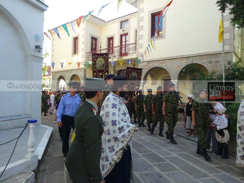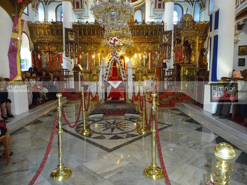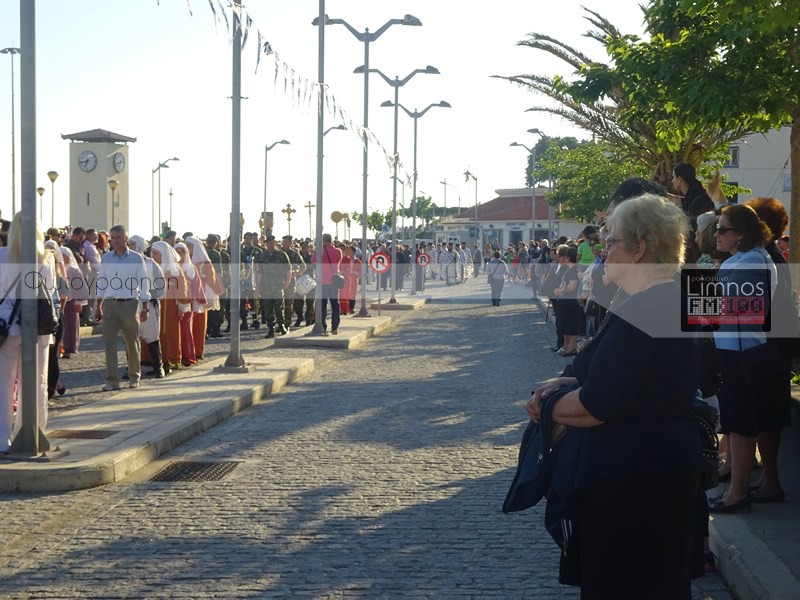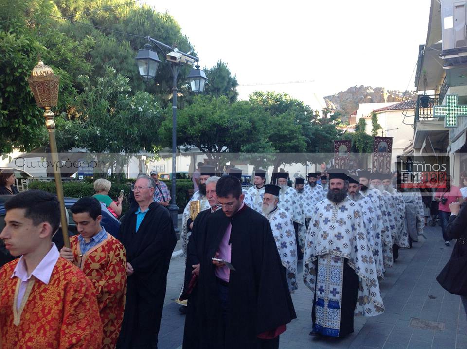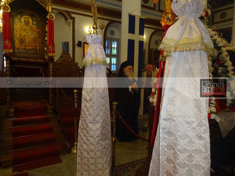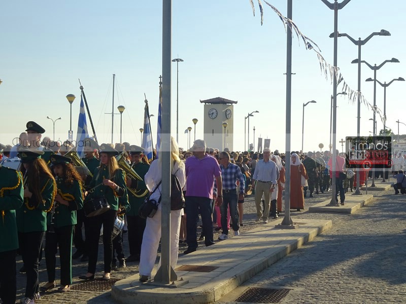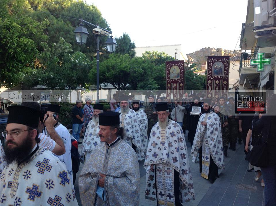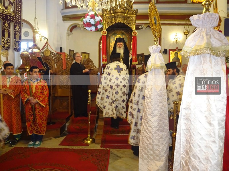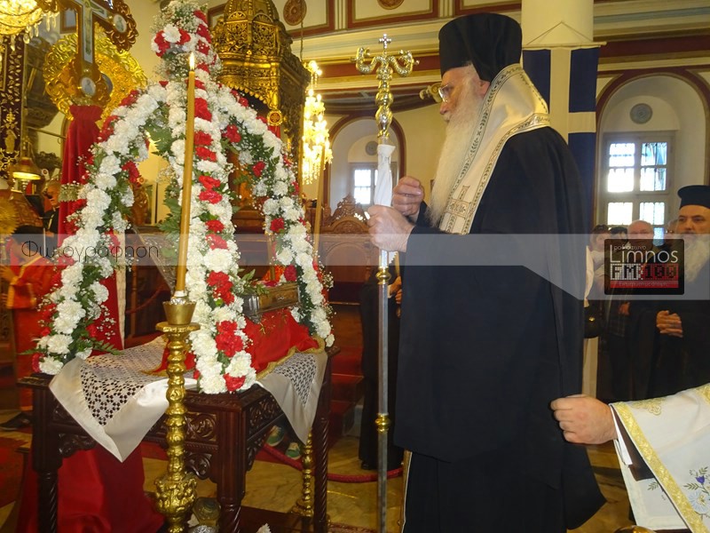 Αμέσως μετά την άφιξη του Τιμίου Ξύλου πραγματοποιήθηκε Λιτάνευση από το Λιμάνι της Μύρινας προς τον Ι.Ν. Αγίας Τριάδας, με τη συμμετοχή αξιωματικών και στρατιωτικών τμημάτων, τη Φιλαρμονική του Στρατού και του Δήμου Λήμνου και πλήθος πιστών.