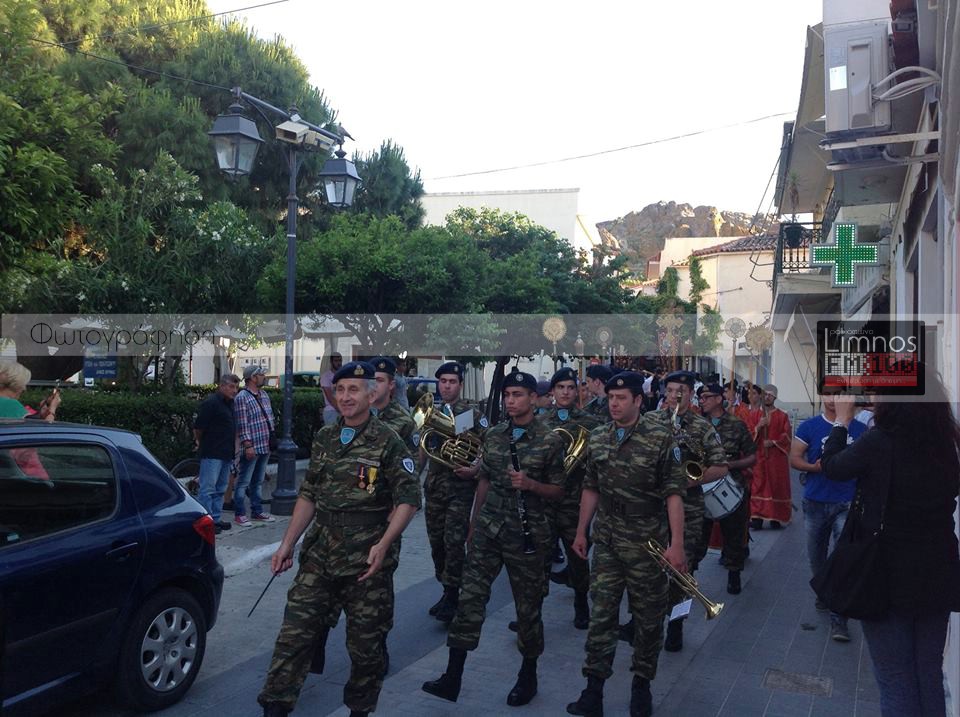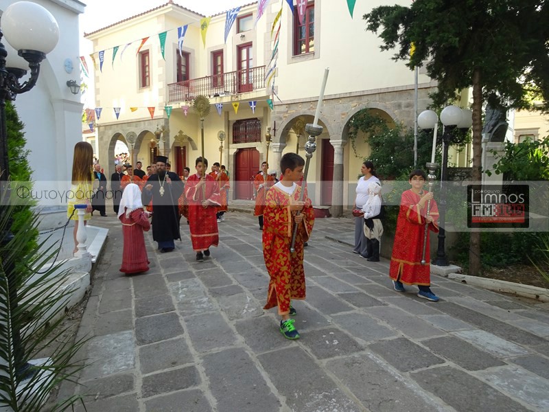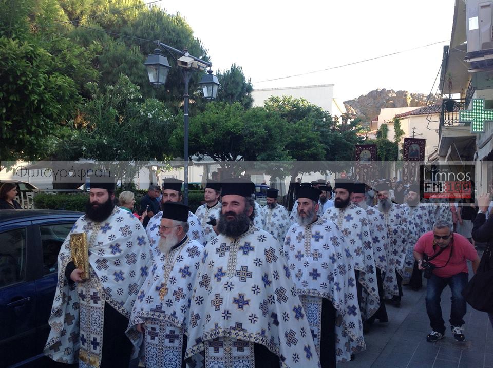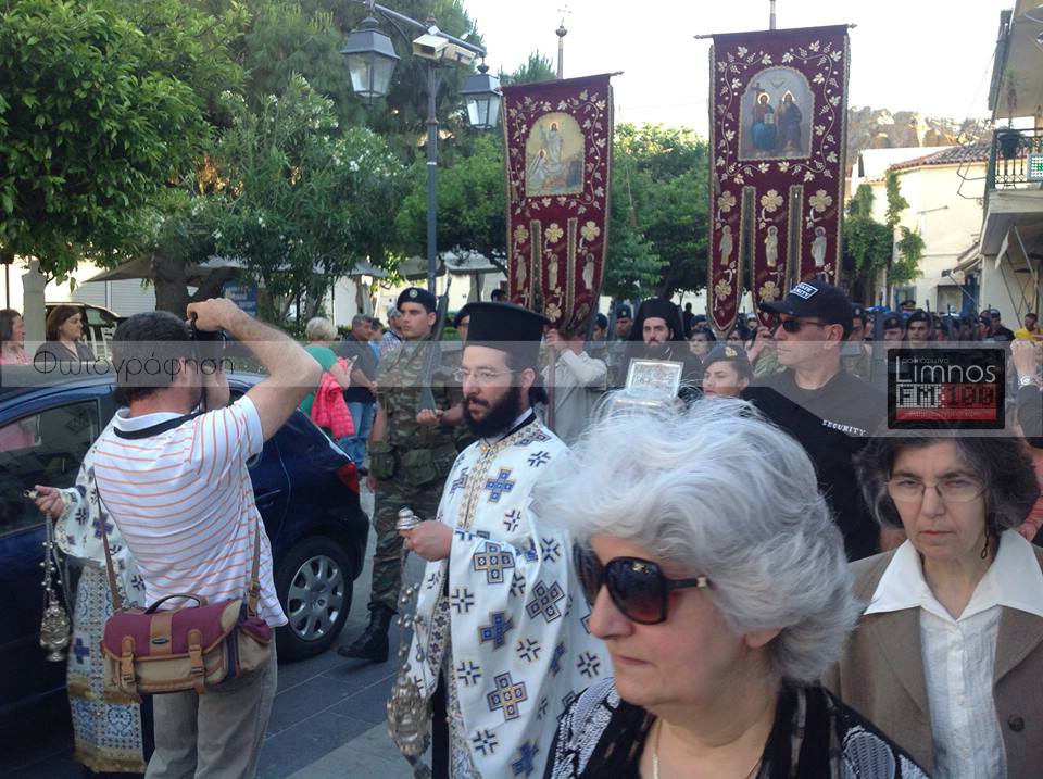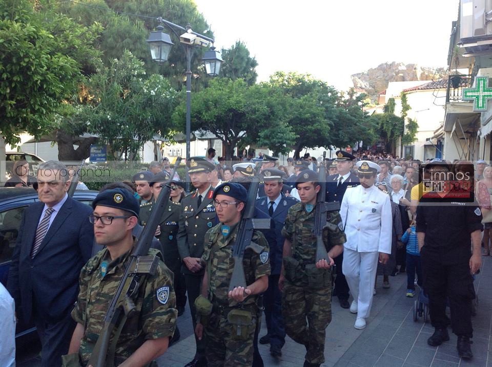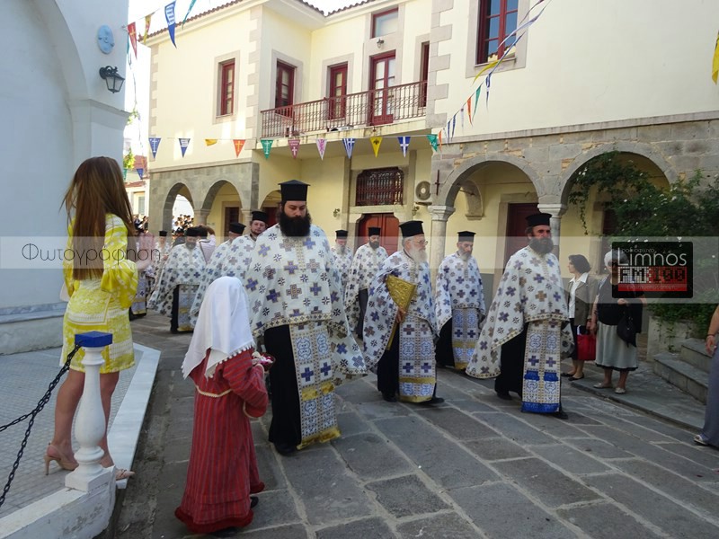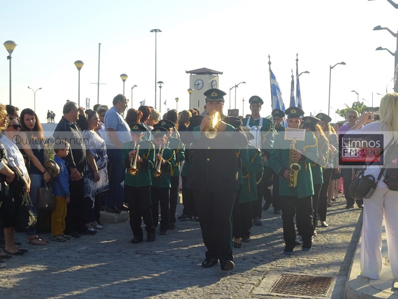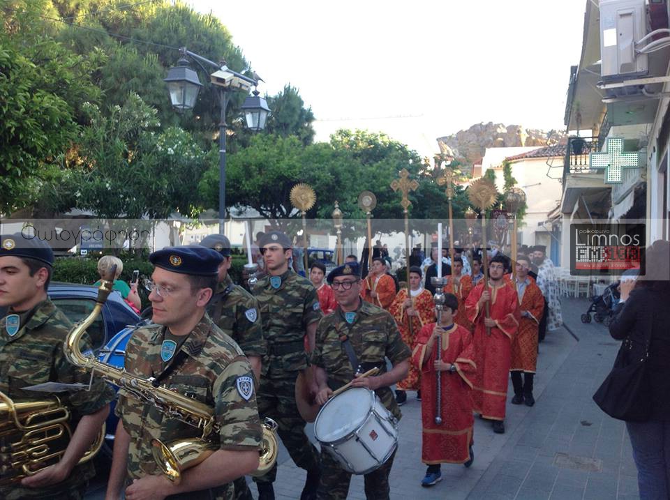 Αμέσως μετά την άφιξη του Τιμίου Ξύλου πραγματοποιήθηκε Λιτάνευση από το Λιμάνι της Μύρινας προς τον Ι.Ν. Αγίας Τριάδας, με τη συμμετοχή αξιωματικών και στρατιωτικών τμημάτων, τη Φιλαρμονική του Στρατού και του Δήμου Λήμνου και πλήθος πιστών.