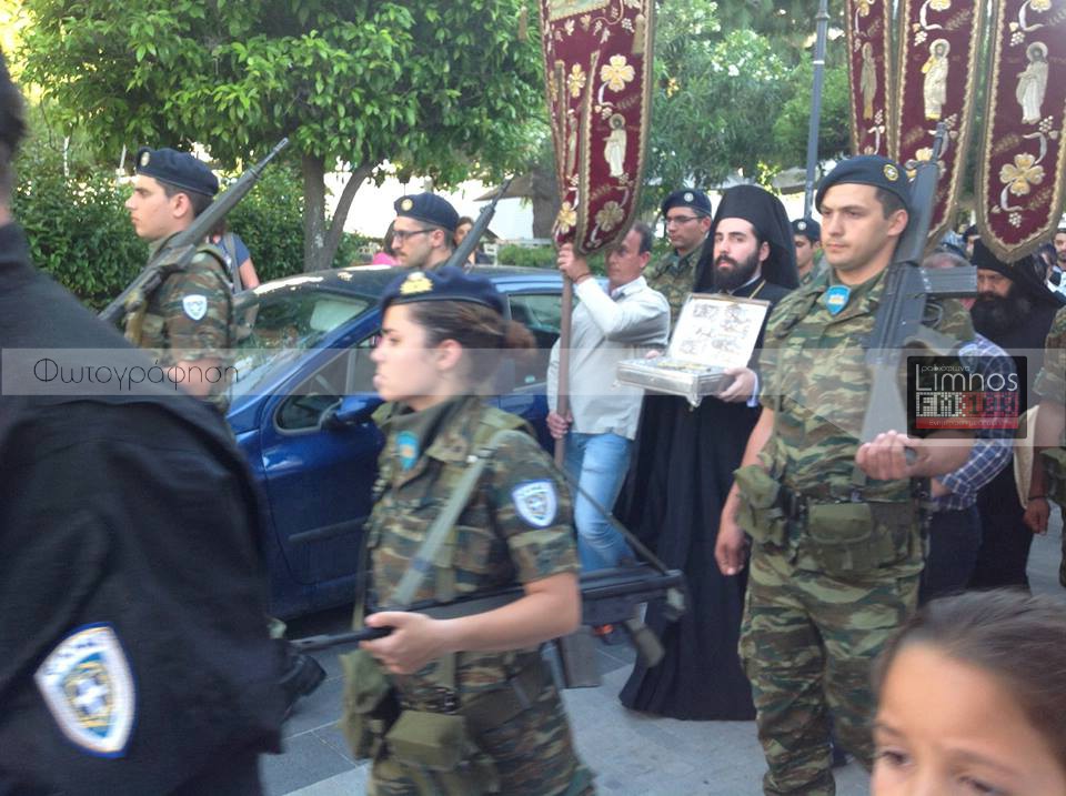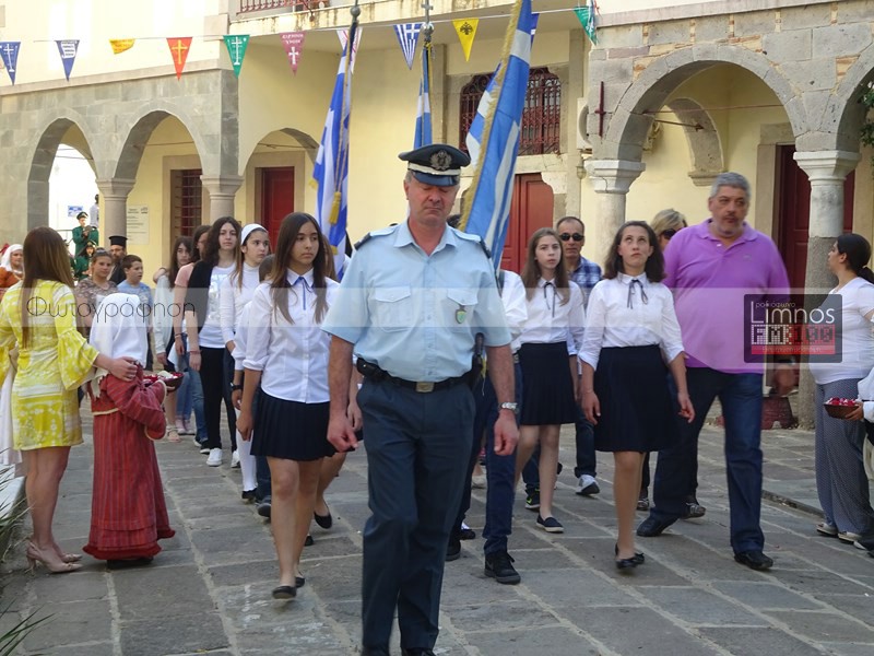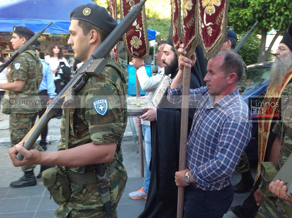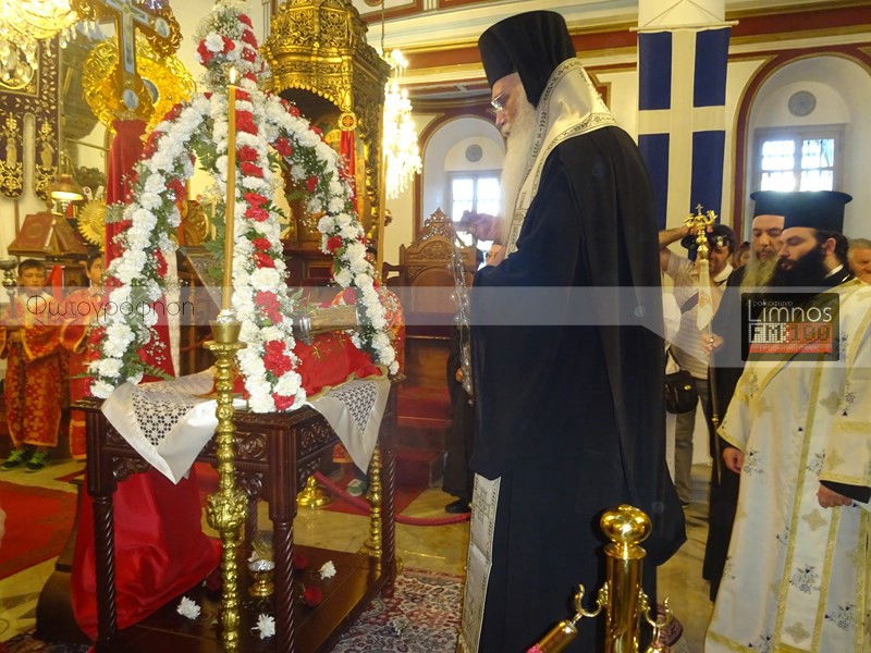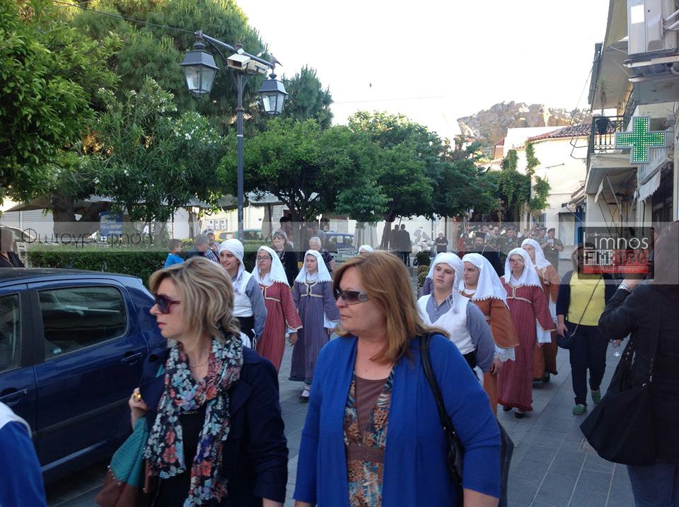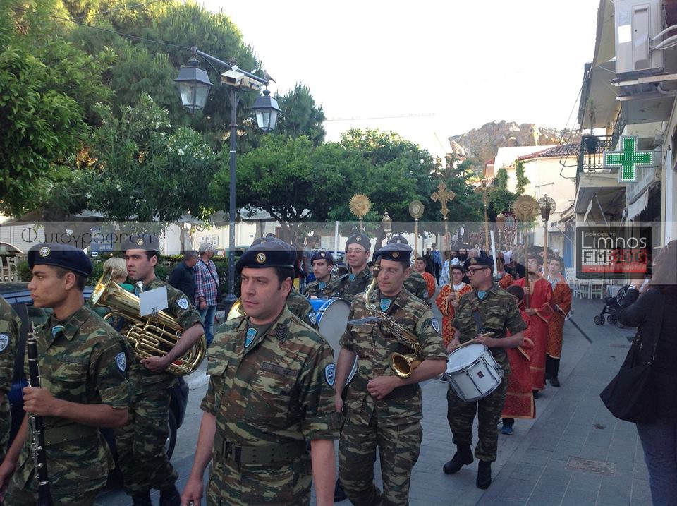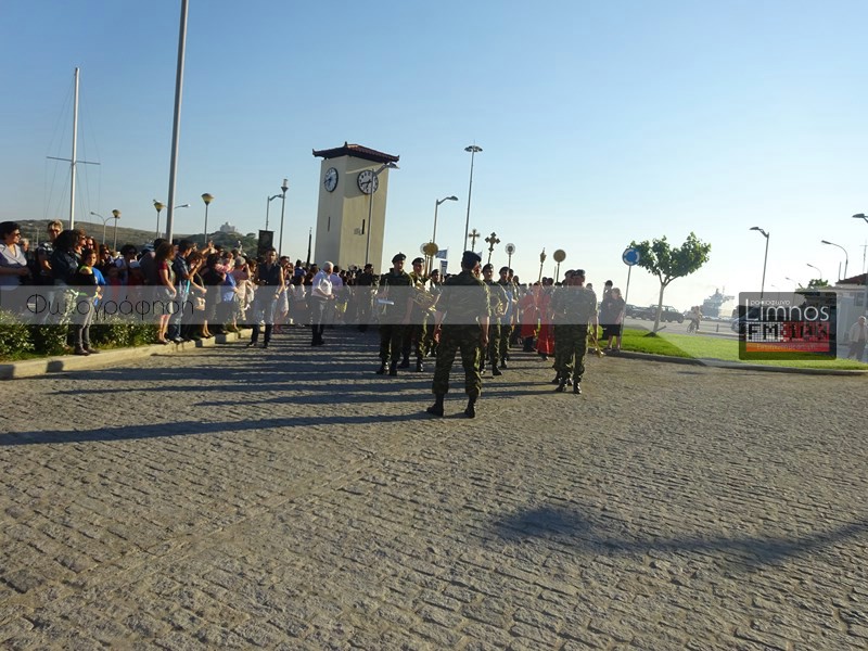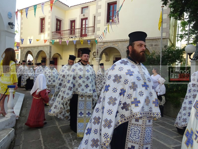 Αμέσως μετά την άφιξη του Τιμίου Ξύλου πραγματοποιήθηκε Λιτάνευση από το Λιμάνι της Μύρινας προς τον Ι.Ν. Αγίας Τριάδας, με τη συμμετοχή αξιωματικών και στρατιωτικών τμημάτων, τη Φιλαρμονική του Στρατού και του Δήμου Λήμνου και πλήθος πιστών.