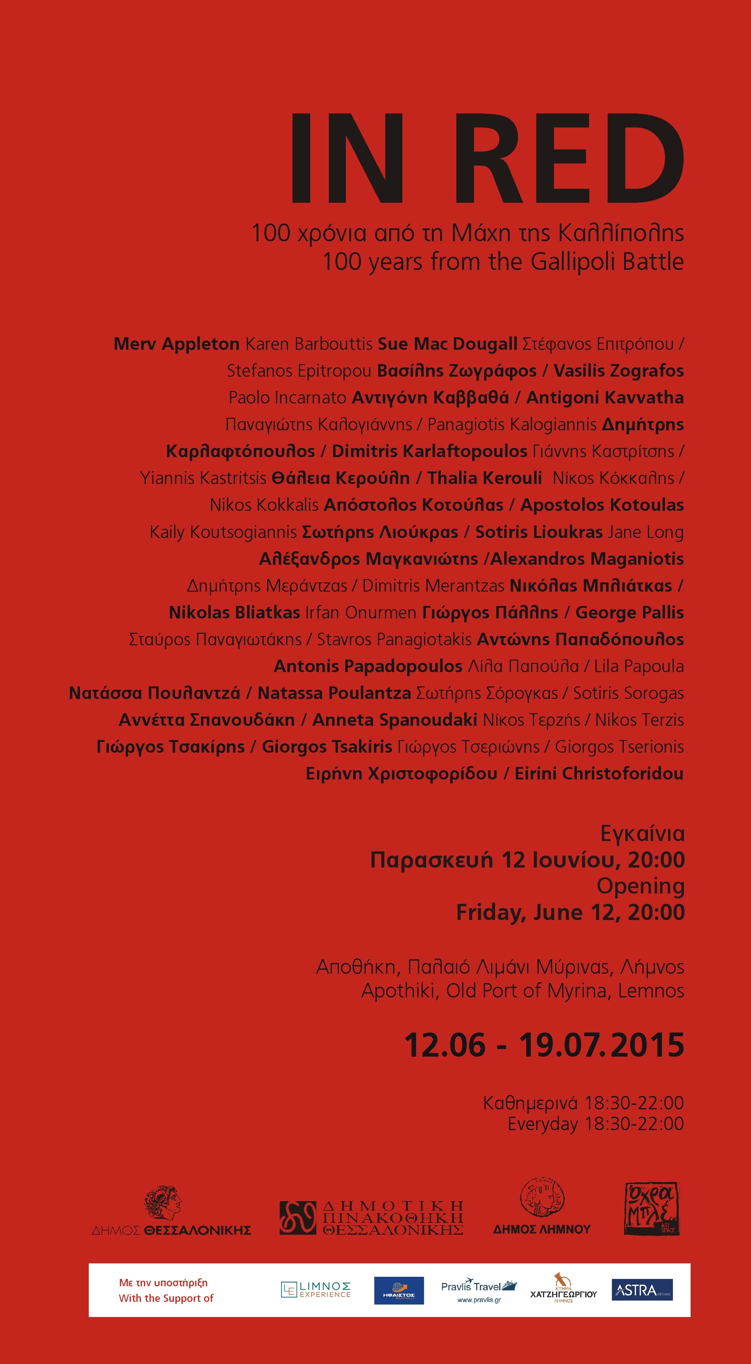 Η έκθεση αποτελεί πρωτοβουλία του χώρου τέχνης Ωχρα-Μπλε στη Λήμνο, και πραγματοποείται με την υποστήριξη των Δήμων Λήμνου και Θεσσαλονίκης, στο πλαίσιο των εορτασμών για τα 100 χρόνια από τη Μάχη της Καλλίπολης.