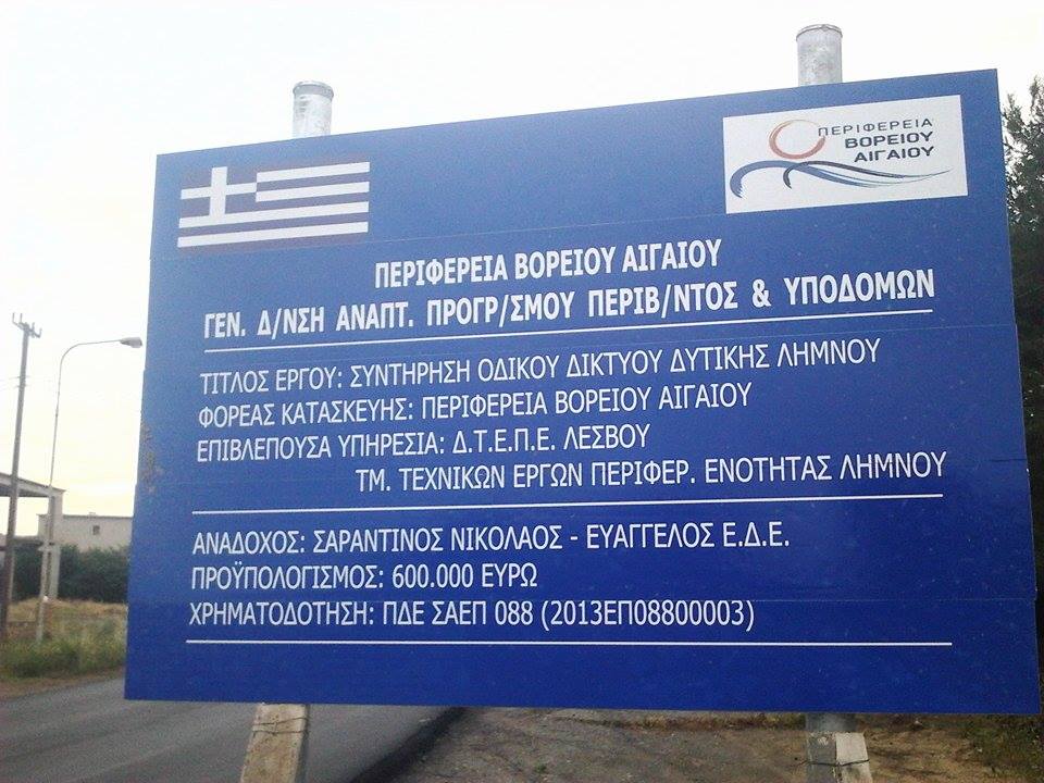 Από τα χρήματα αυτά, οι 250.000€ αφορούν εργασίες για το οδικό δίκτυο της Ανατολικής Λήμνου και οι 600.000€ για τη Δυτική Λήμνο. .