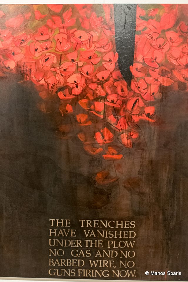 Με κοινό στοιχείο στα περισσότερα από αυτά το κόκκινο χρώμα, ως σύμβολο όλων εκείνων που χάθηκαν στα πεδία της μάχης, η διατήρηση της μνήμης γίνεται το ζητούμενο και η υπόμνηση της υποχρέωσης, σε ατομικό και συλλογικό επίπεδο.
