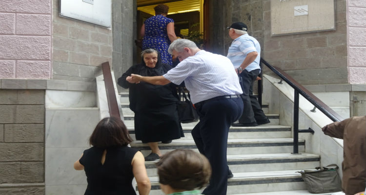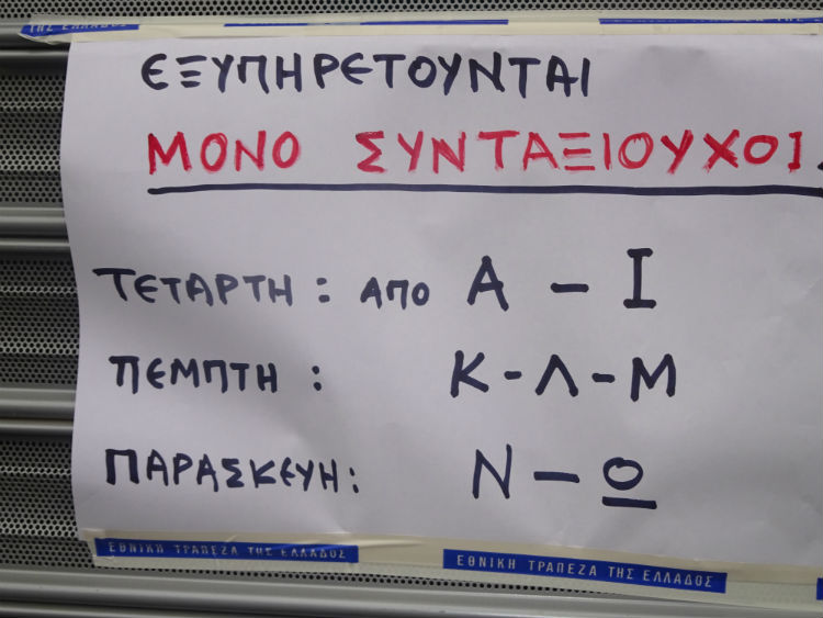 Οι συνταξιούχοι της Λήμνου, από νωρίς στήθηκαν έξω από τα καταστήματα περιμένοντας τις πόρτες των καταστημάτων να ανοίξουν αλλά με έκπληξη διαπίστωσαν πως τουλάχιστον η Εθνική ενημέρωνε πως οι συντάξεις θα δοθούν με αλφαβητική σειρά.