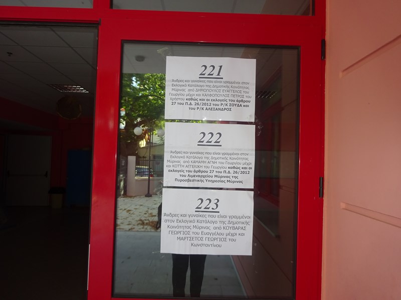 Κατά την πρώτη ώρα κατά μέσο όρο, στα εκλογικά τμήματα της Μύρινας είχαν ψηφίσει περί τα 15 άτομα.