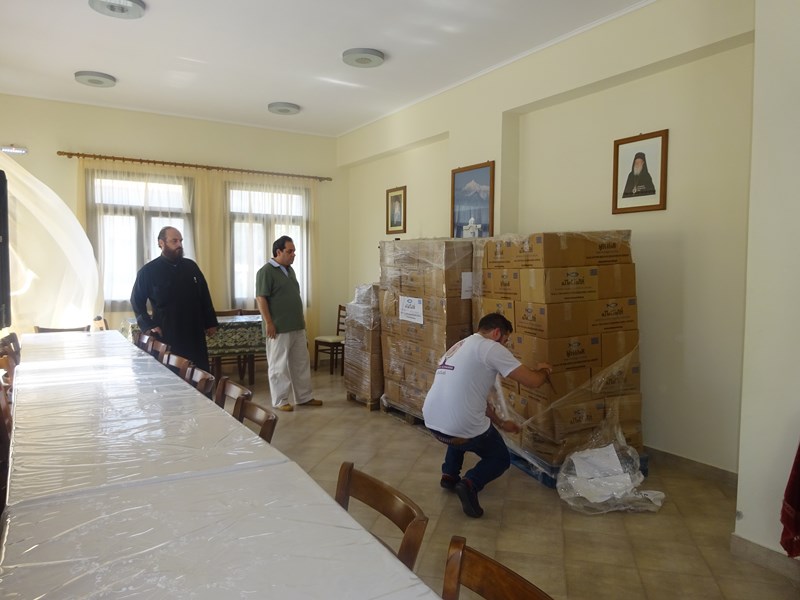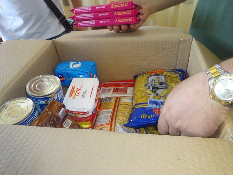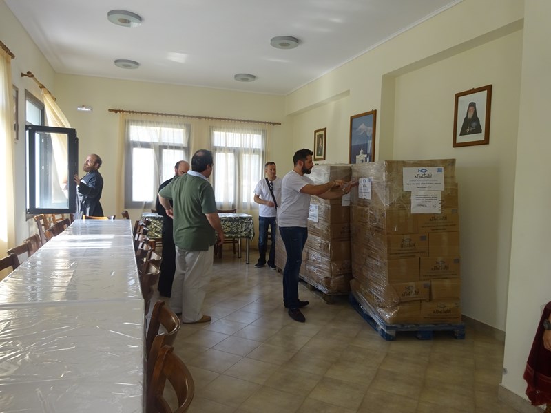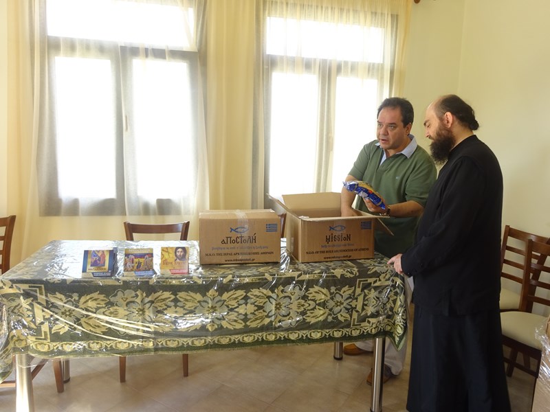 Η παράδοση των πακέτων πραγματοποιήθηκε στις 10 το πρωί στο πνευματικό κέντρο της Παναγιάς του Τσας.