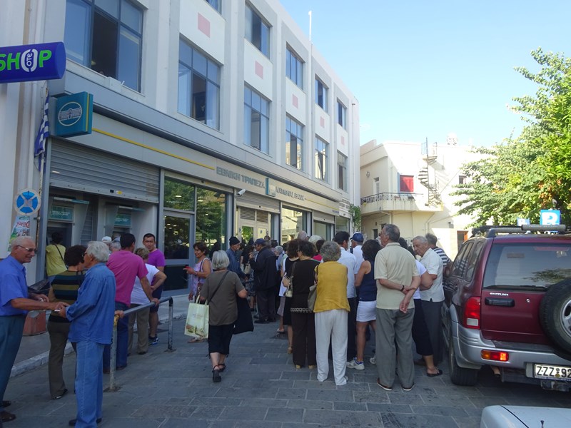 Ουρές παρατηρούνται από ηλικιωμένους που θέλουν να κάνουν ανάληψη από τα γκισέ, αλλά και σε ορισμένα ΑΤΜ.