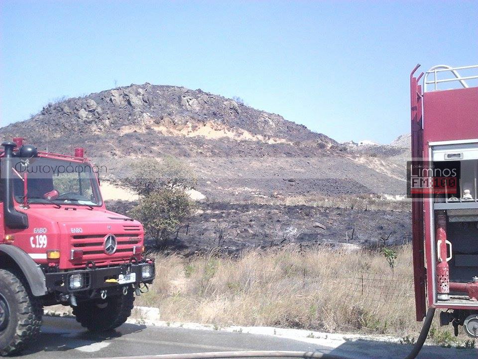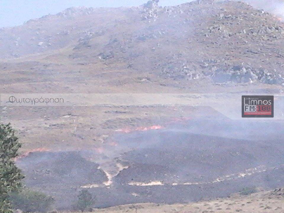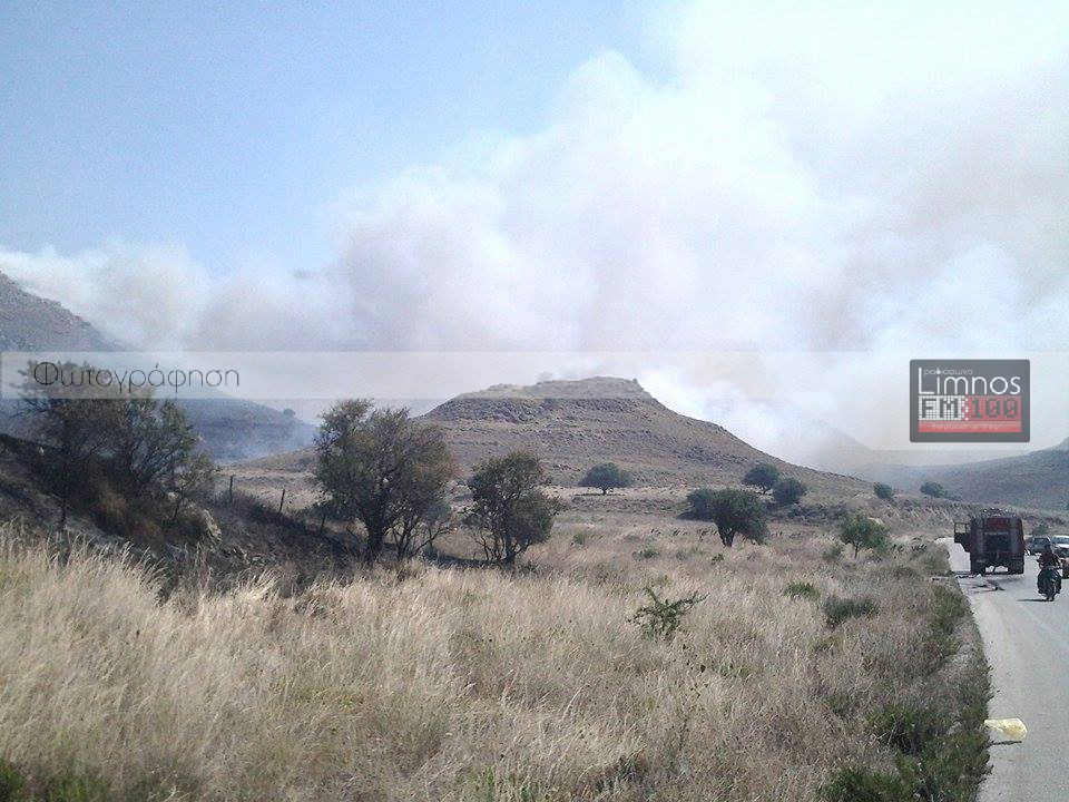Update: 18:10 Σε εξέλιξη μεγάλη κινητοποίηση Πυροσβεστικής, Αστυνομίας, Στρατού, Περιφερειακής Ενότητας και Δήμου για την κατάσβεση της πυρκαγιάς. Σύμφωνα με ανακοίνωση του Πυροσβεστικού Σώματος, στο σημείο επιχειρούν 16 πυροσβέστες με 8 οχήματα και 2 αεροσκάφη. Το έργο της Πυροσβεστικής Υπηρεσίας συνδράμει ο Δήμος Λήμνου με προσωπικό και οχήματα.