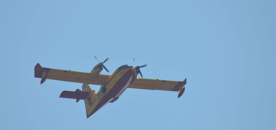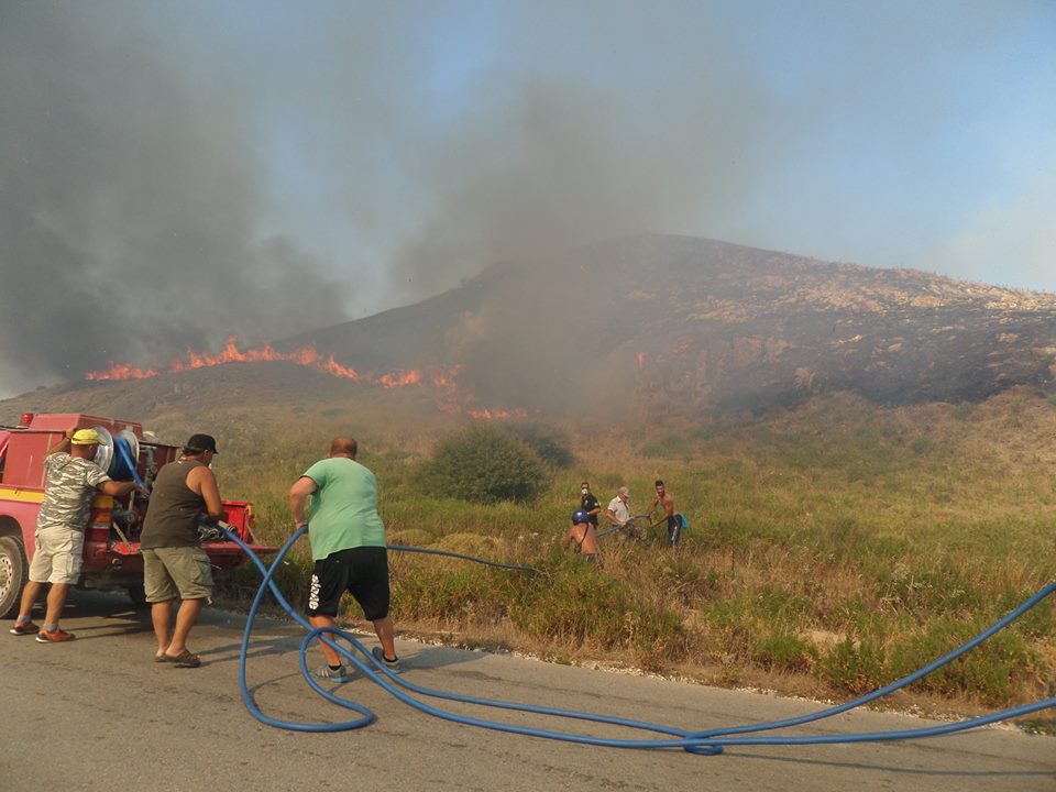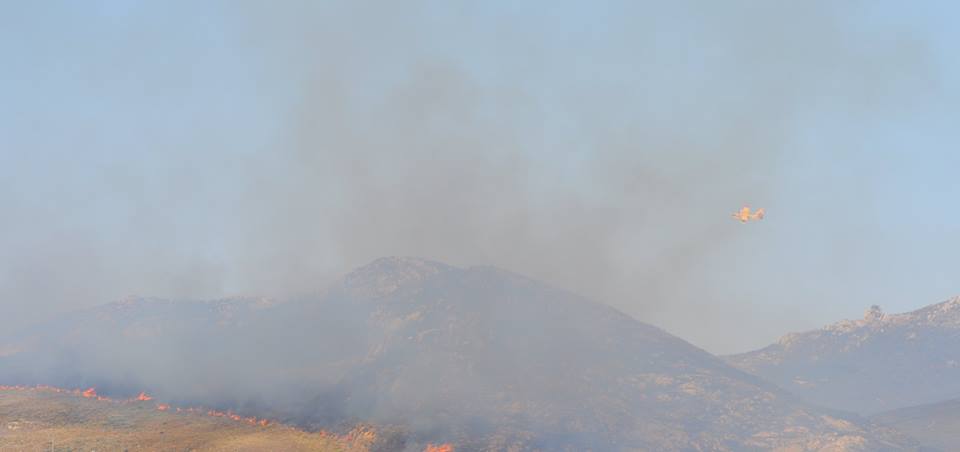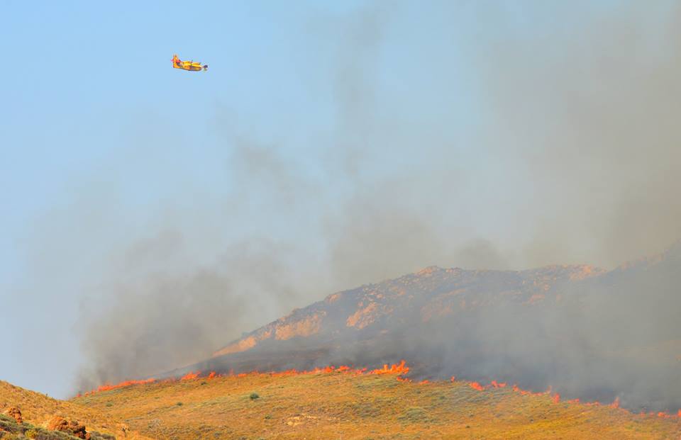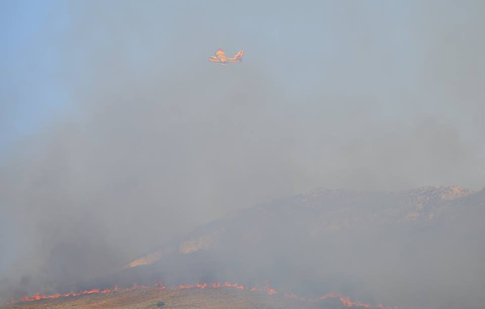 Update: 17:22 Εδώ και λίγη ώρα πυροσβεστικά αεροπλάνα πραγματοποιούν ρίψεις νερού. Στο σημείο βρίσκεται και ο Δήμαρχος Λήμνου, κ. Δημήτρης Μαρινάκης και οι Αντιδήμαρχοι κ. Νίκος Μοσχάκης και κ. Γιώργος Σακαρίκος, βοηθώντας στο συντονισμό του έργου της κατάσβεσης.