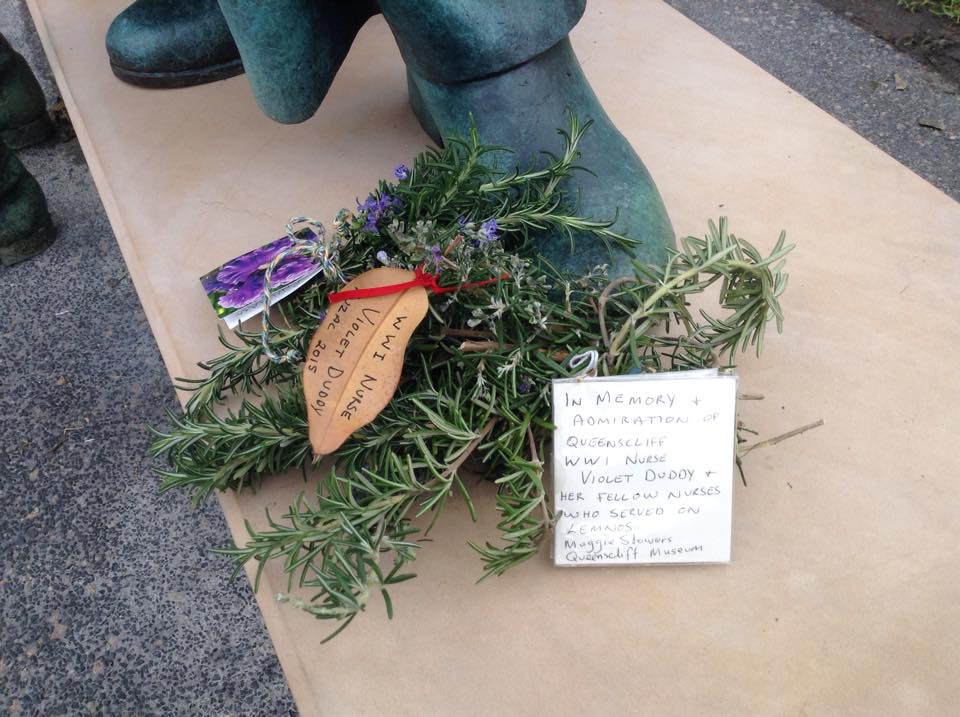 Το άγαλμα που αναπαριστά τη νοσοκόμα Μάτρον Γκρέις Ουίλσον και έναν Αυστραλό στρατιώτη φιλοτεχνήθηκε από τον διακεκριμένο γλύπτη Πήτερ Κόρλετ (στη φωτογραφία κάτω με τον Τζιμ Κλέιβεν στα δεξιά), και μετά από πρωτοβουλία της Επιτροπής Μνήμης Λήμνου-Καλλίπολης και δύο ομογενών πρώην πολιτικών, των Λι Ταρλάμη και Γιάννη Πανταζόπουλου.