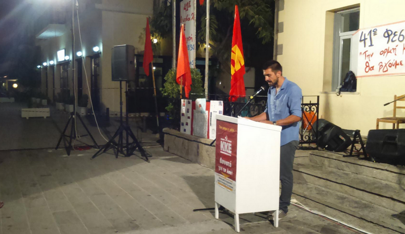 Την εκδήλωση άνοιξε με χαιρετισμό εκ μέρους της Οργάνωσης Λήμνου της ΚΝΕ η Αγγελική Καραγεώργη, ενώ την κεντρική ομιλία έκανε ο Σταύρος Τσιριγώτης, από την Οργάνωση Αιγαίου της ΚΝΕ.