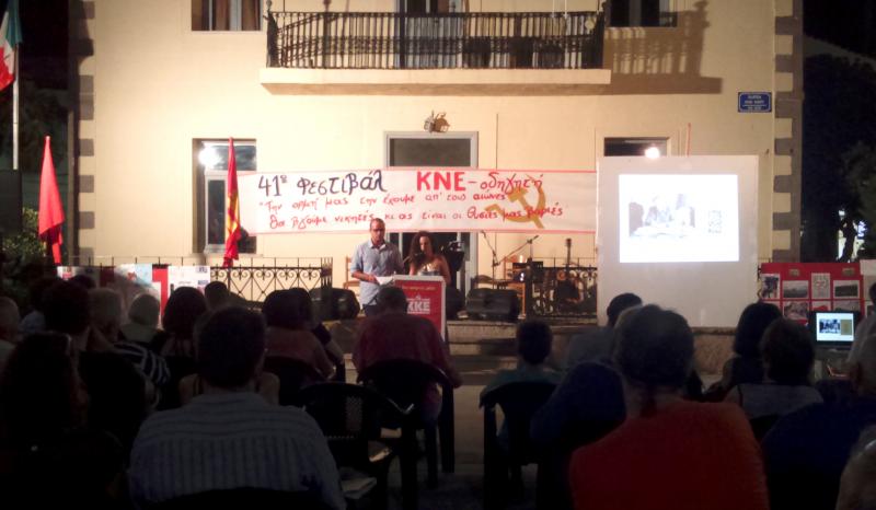 Κατά τη διάρκεια της εκδήλωσης, προβλήθηκε βίντεο-αφιέρωμα στον Άρη Βελουχιώτη και παρουσιάστηκε οπτικοακουστικό αφιέρωμα στους εξόριστους του Άη Στράτη, από μέλη της ΚΝΕ.