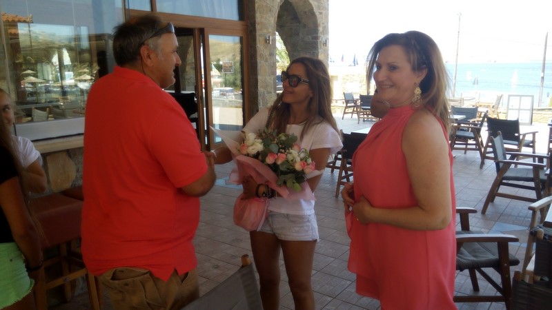 Οι εκπρόσωποι της Λήμνος Τουριστική και του ΟΕΠΑ καλωσόρισαν την τραγουδίστρια στη Λήμνο και της ευχήθηκαν για την ονομαστική της εορτή.