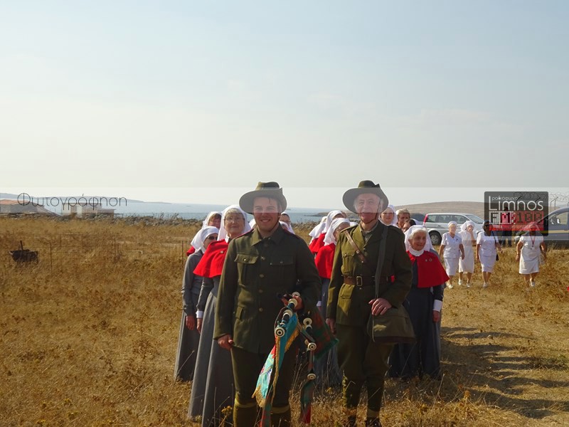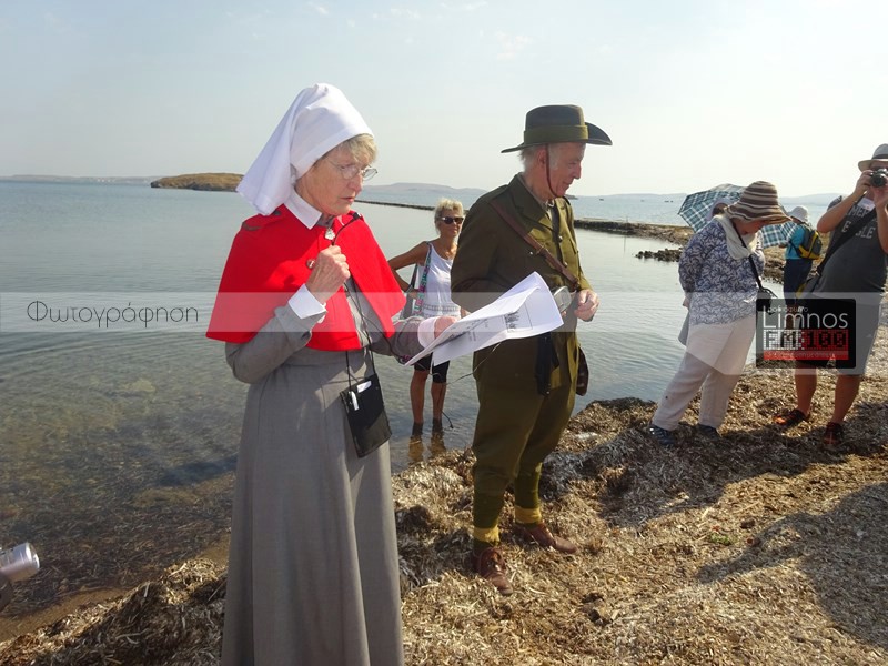 "100 χρόνια μετά την έλευση του σώματος των αυστραλών νοσοκόμων, που ήρθε στη Λήμνο για να περιθάλψει έναν τεράστιο αριθμό τραυματιών του Α' Παγκοσμίου Πολέμου, νοσοκόμες από την Αυστραλία και τη Νέα Ζηλανδία, πραγματοποιώντας μία επίσκεψη τιμής και μνήμης φωτογραφήθηκαν σήμερα στην περιοχή κοντά στο νησάκι του Αγ. Νικολάου στην Πούντα.