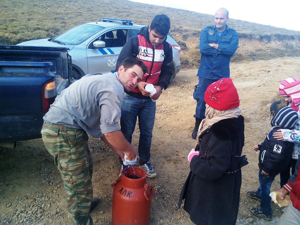 Λίγη ώρα αργότερα ο Νάσος Καραγιαννάκης, κτηνοτρόφος της περιοχής που πέρασε από το σημείο, έσπευσε στο κοπάδι του, άρμεξε, έβρασε το γάλα και επέστρεψε για να το δώσει στις οικογένειες και τα παιδιά των προσφύγων, χαρίζοντας χαμόγελα στα πρόσωπα τους.