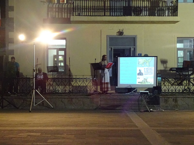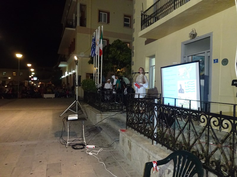 Μετά την λήξη της λαμπαδηφορίας μπροστά από το Δημαρχείο υπήρξε σύντομη αναφορά στο χρονικό της απελευθέρωσης από τον Γυμνασιάρχη κο Μανώλη Ρόκκο.
