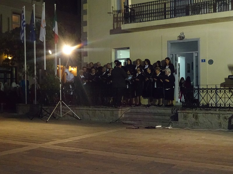 Αμέσως μετά ακολούθησε μουσικοχορευτική εκδήλωση με τη συμμετοχή της χορωδίας του Δήμου Λήμνου και χορευτικών τμημάτων των πολιτιστικών συλλόγων Ανδρωνίου, Αγίου Δημητρίου, Μούδρου, Τσιμανδρίων και ΓΑΣ ΜΥΡΙΝΑΣ τα οποία παράλληλα χόρεψαν τους παραδοσιακούς χορούς της Λήμνου.
