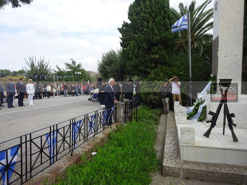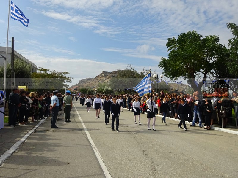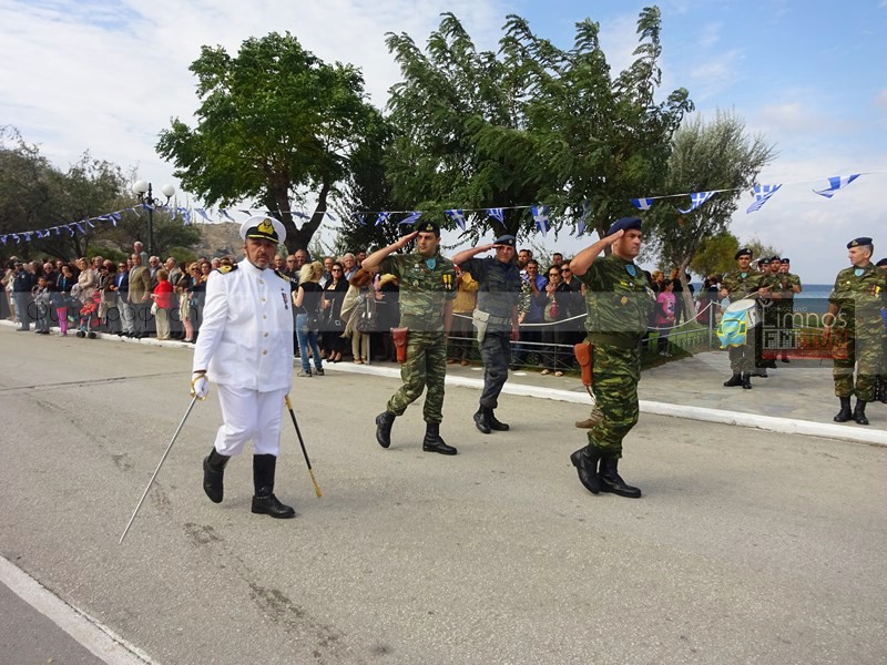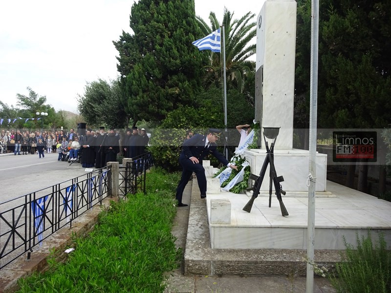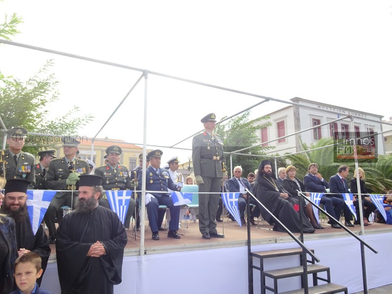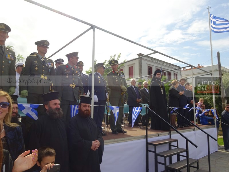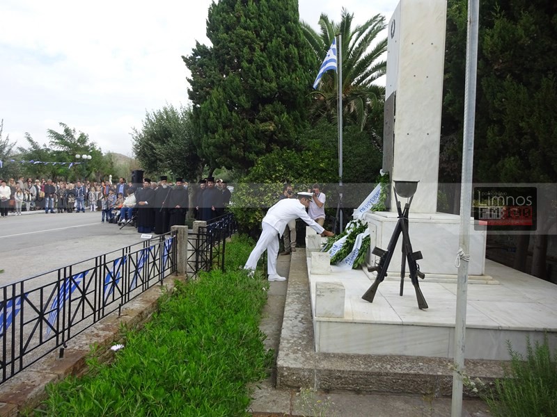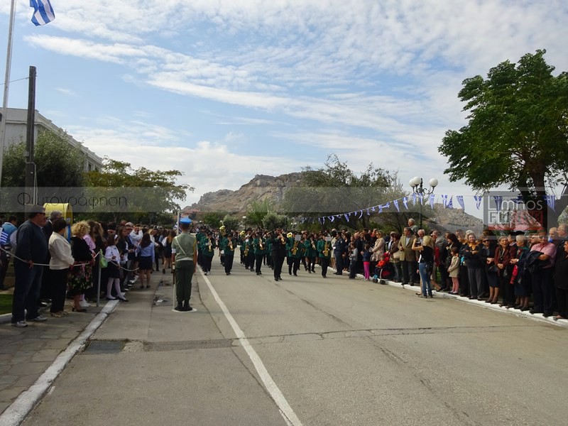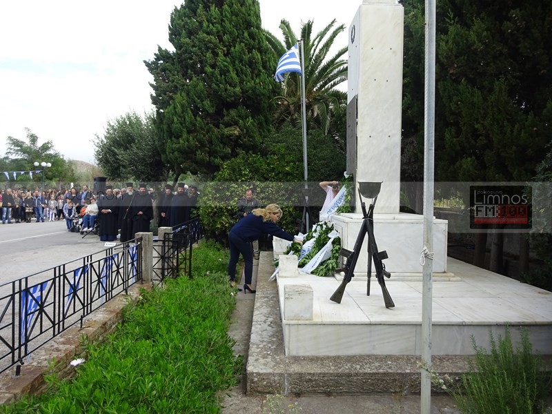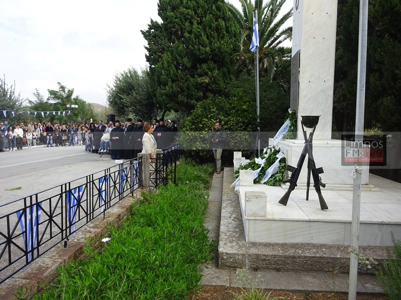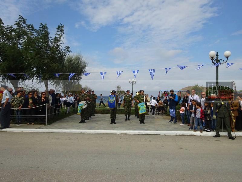 Πριν την έναρξη της παρέλασης, πραγματοποιήθηκε η κατάθεση στεφάνων. Στη συνέχεια, στην εξέδρα των επισήμων, μεταξύ άλλων, παρέστησαν η Περιφερειάρχης Β. Αιγαίου Χριστιάνα Καλογήρου, ο Έπαρχος Λήμνου Βαγγέλης Γιαρμαδούρος, ο Δήμαρχος Λύσης Κύπρου κ. Συμεών Παστός, ο Δήμαρχος Λήμνου Δημήτρης Μαρινάκης, η Δήμαρχος Αγίου Ευστρατίου Μαρία Κακαλή, ο στρατιωτικός Διοικητής της 88 ΣΔΙ Κωνσταντίνος Κούτρας και εκπρόσωποι της στρατιωτικής και θρησκευτικής ηγεσίας. Εκπρόσωπος της κυβέρνησης θα πρέπει να αναφερθεί πως φέτος δεν υπήρξε.