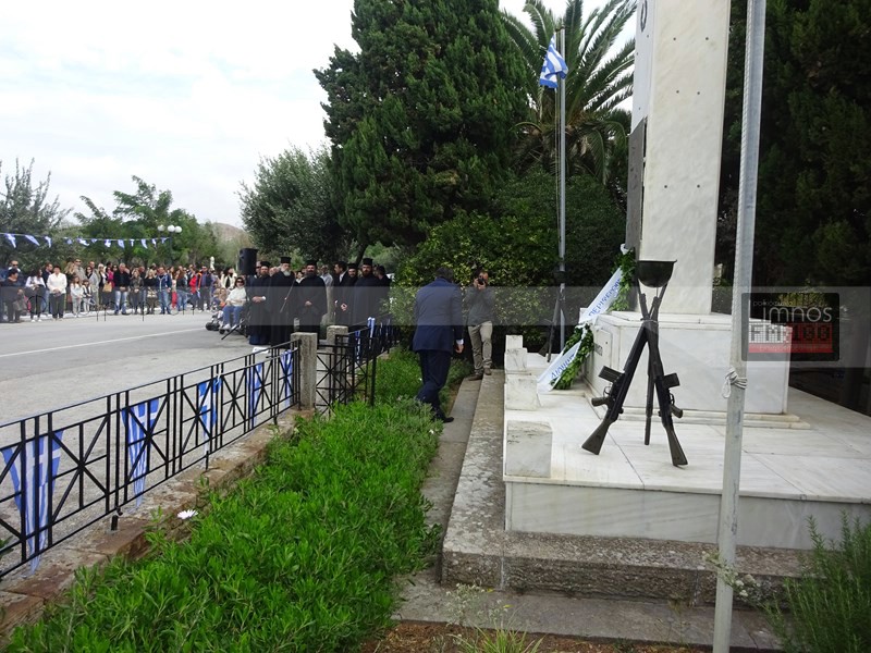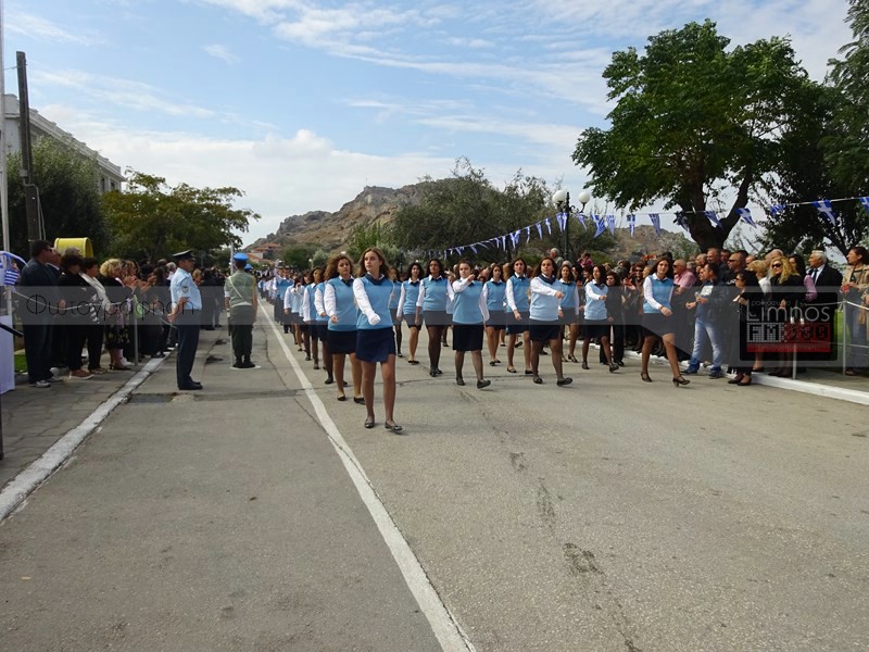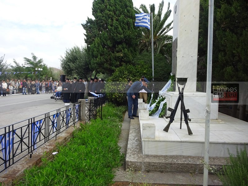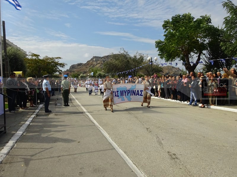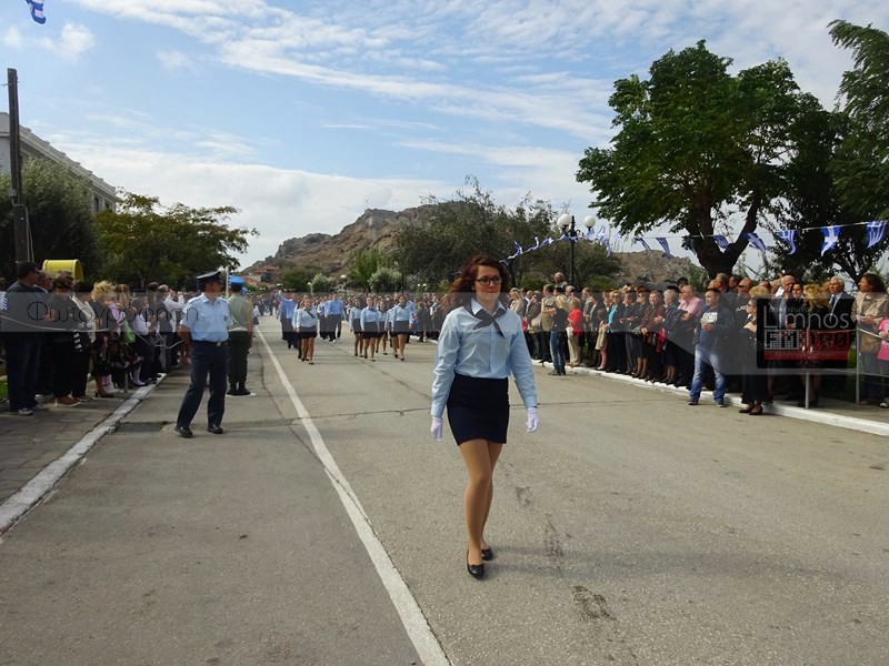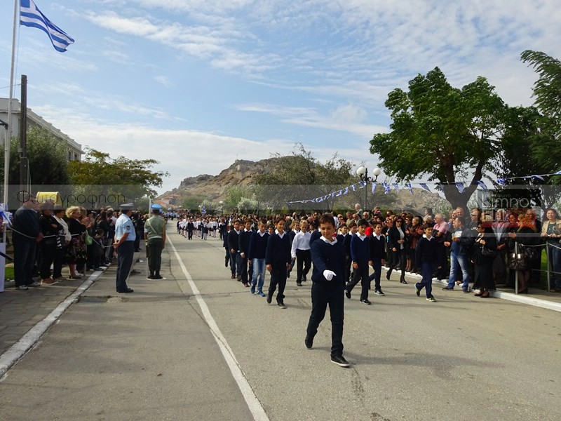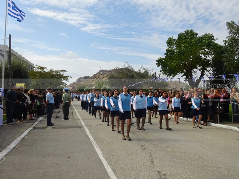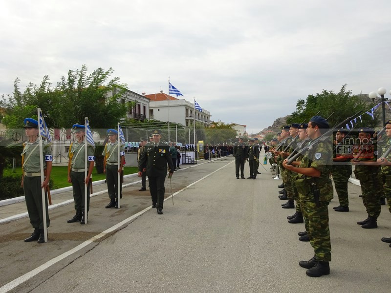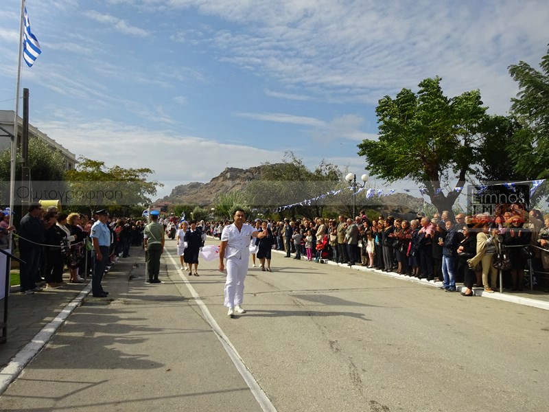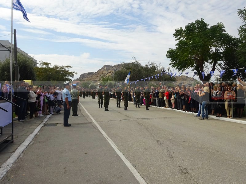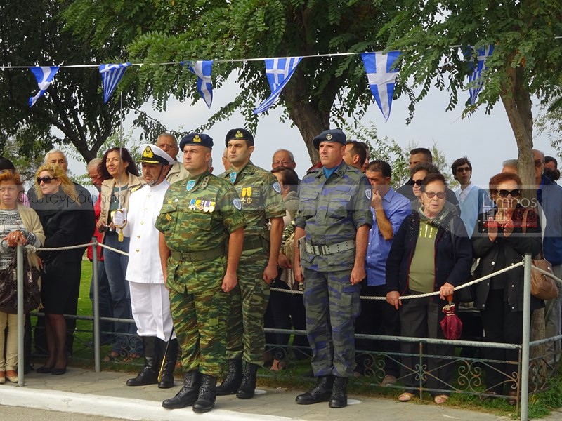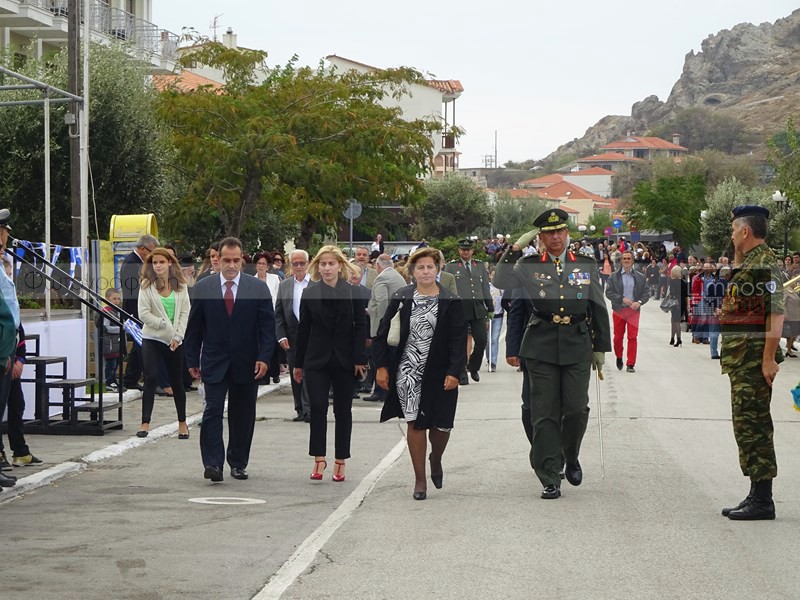 Πριν την έναρξη της παρέλασης, πραγματοποιήθηκε η κατάθεση στεφάνων. Στη συνέχεια, στην εξέδρα των επισήμων, μεταξύ άλλων, παρέστησαν η Περιφερειάρχης Β. Αιγαίου Χριστιάνα Καλογήρου, ο Έπαρχος Λήμνου Βαγγέλης Γιαρμαδούρος, ο Δήμαρχος Λύσης Κύπρου κ. Συμεών Παστός, ο Δήμαρχος Λήμνου Δημήτρης Μαρινάκης, η Δήμαρχος Αγίου Ευστρατίου Μαρία Κακαλή, ο στρατιωτικός Διοικητής της 88 ΣΔΙ Κωνσταντίνος Κούτρας και εκπρόσωποι της στρατιωτικής και θρησκευτικής ηγεσίας. Εκπρόσωπος της κυβέρνησης θα πρέπει να αναφερθεί πως φέτος δεν υπήρξε.