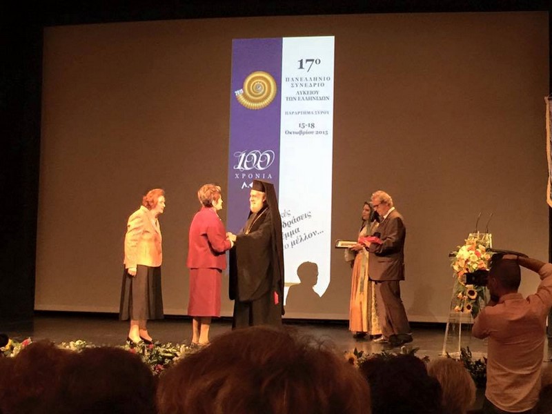 Το Λύκειο την Ελληνίδων Σύρου, το πρώτο παράρτημα που δημιούργησε εκτός Αθηνών η ιδρύτρια του Λυκείου Καλλιρόη Παρρέν, γιορτάζει φέτος παράλληλα και τα 100 χρόνια από την ίδρυσή του και αποτελεί έναν ιδιαίτερα σημαντικό φορέα πολιτισμού, με διαχρονική πορεία και προσφορά στην κοινωνική και πολιτιστική ζωή του νησιού. Το σημαντικό ρόλο του Λυκείου τόνισε ο Μητροπολίτης Σύρου κ. Δωρόθεος που εκφώνησε την εναρκτήρια ομιλία του Συνεδρίου και τίμησε τον θεσμό του Λυκείου Ελληνίδων, δίνοντας το ύψιστο μετάλλιο της Μητρόπολης τόσο στην τέως, όσο και στη νυν πρόεδρο του Λυκείου Ελληνίδων Σύρου.